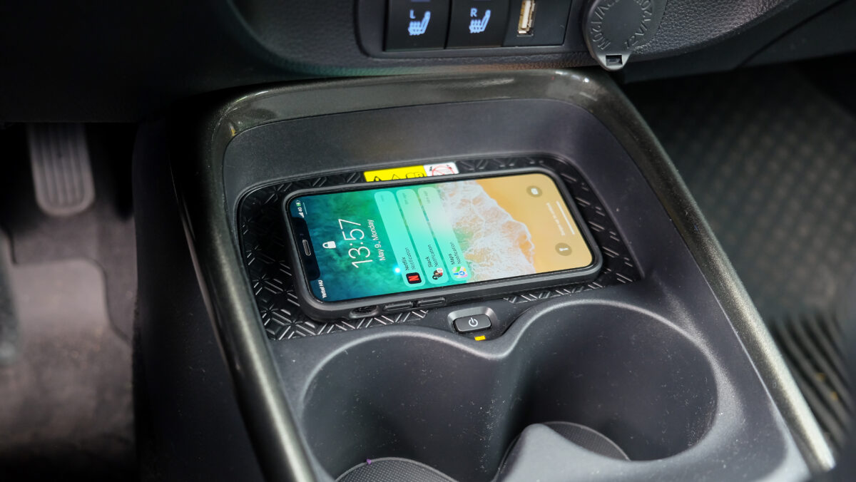 A kettős első pohártartó előtti vezeték nélküli telefontöltő is a 280 ezer forintos Tech csomag része - az extrák nem túlárazottak