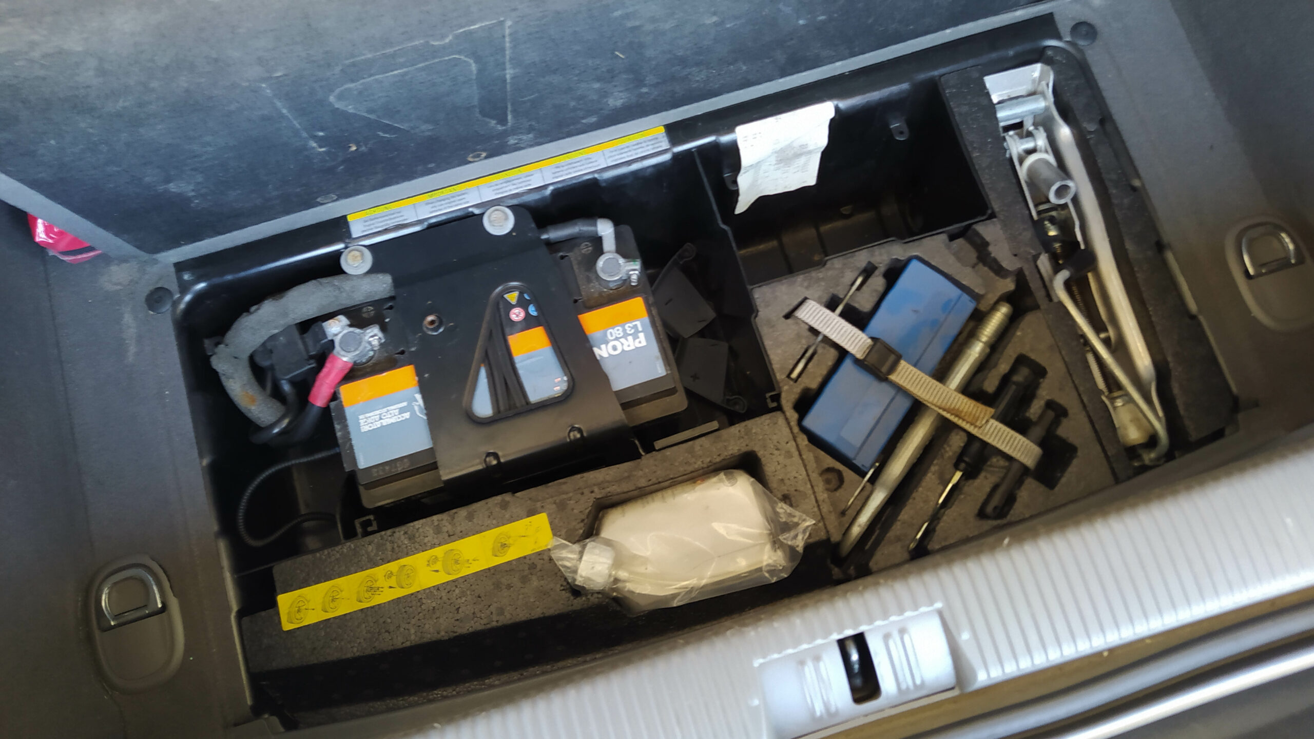 A padló alatt nem a pótkereket, hanem az aksit találhatjuk meg az összes gyári szerszám mellett
