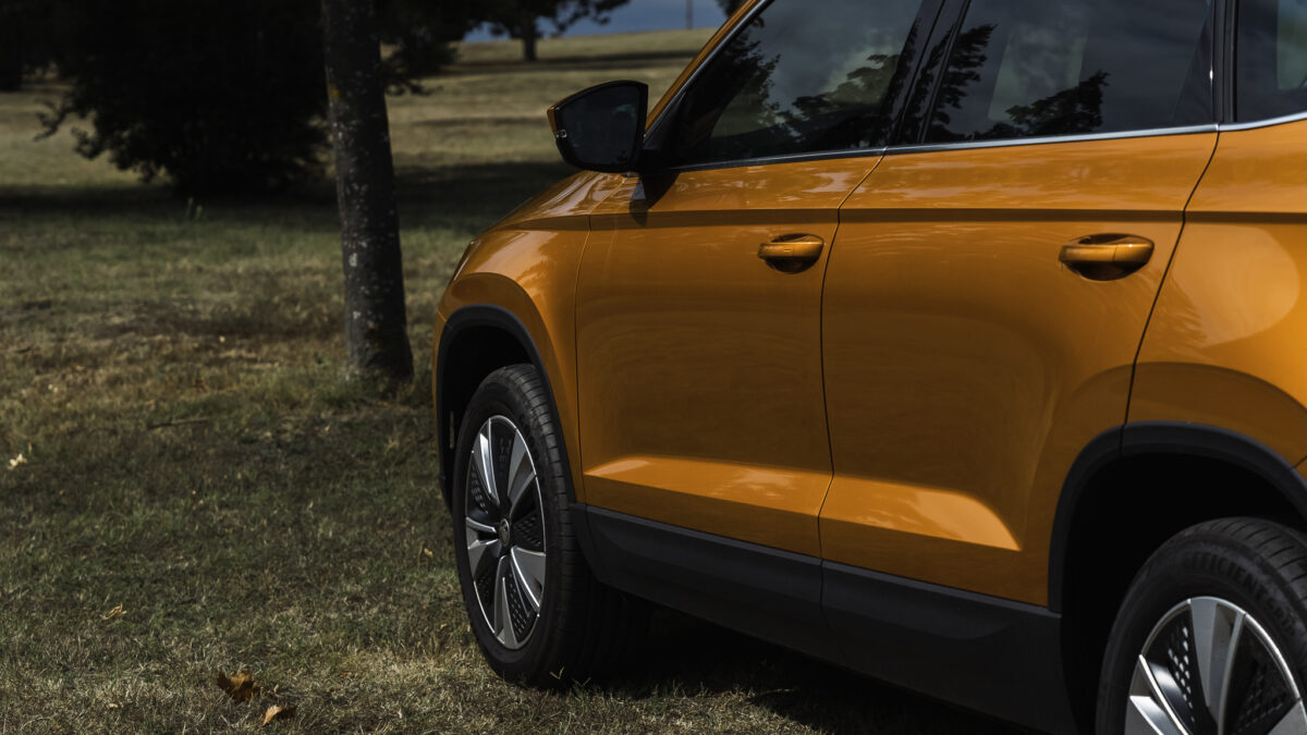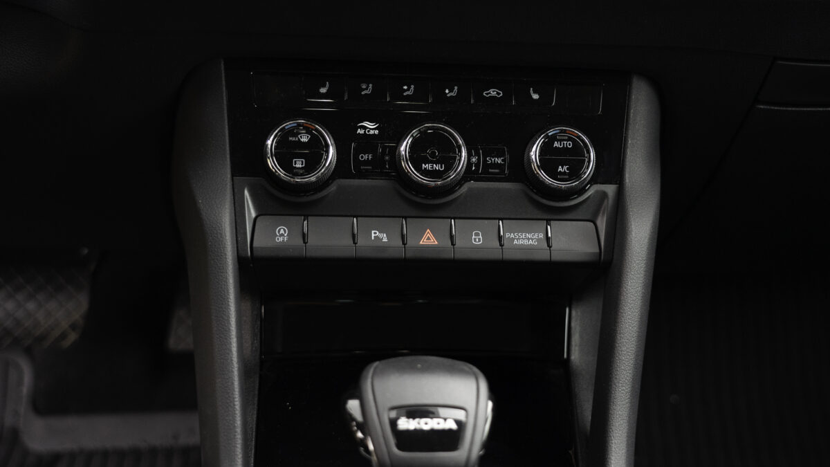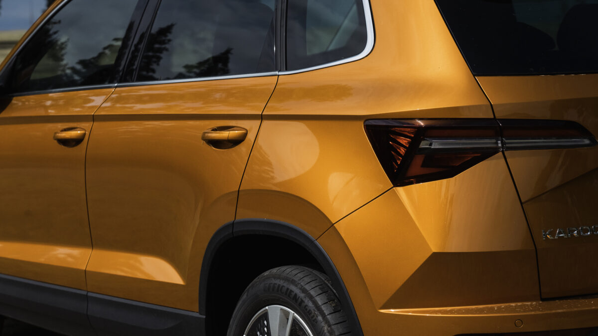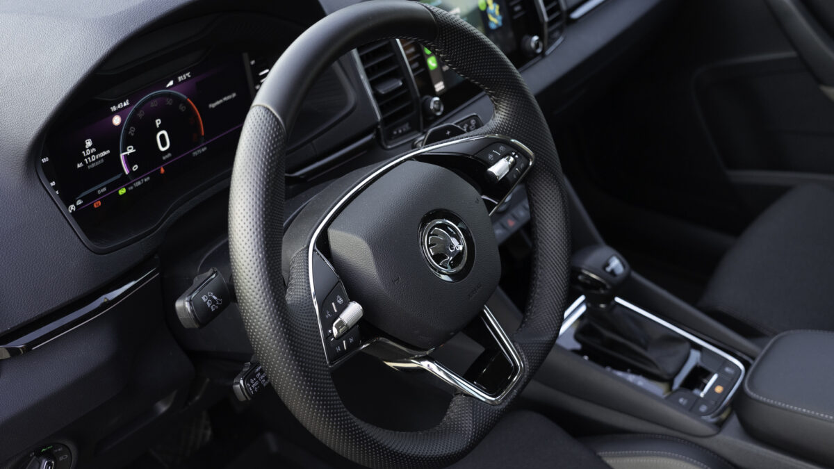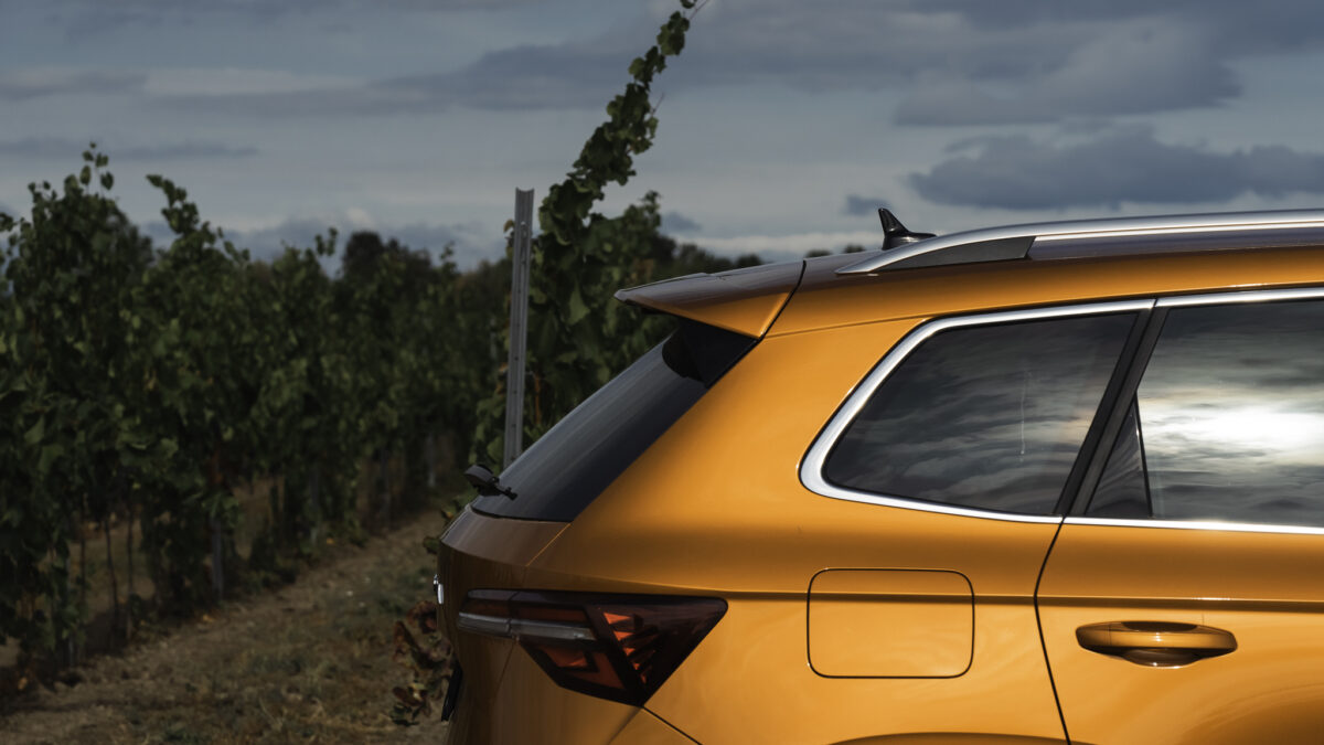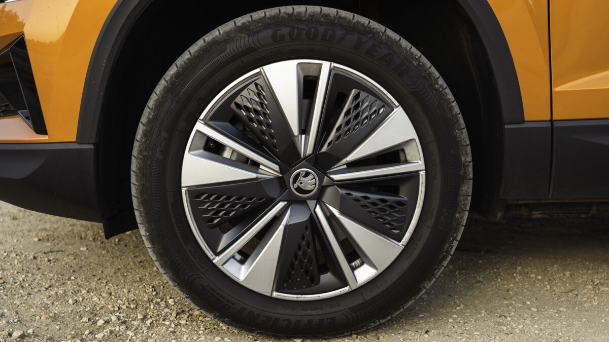 Megkapta a Kodiaq hatszögletű hűtőrácsát, amivel sokkal “elszántabb” hatást kelt az eleje, az új lökhárító is ráerősít erre. Az alapáron 17 colos, új (leszedhető aero takaró elemekkel ellátott) felnik is remekül állnak alatta.