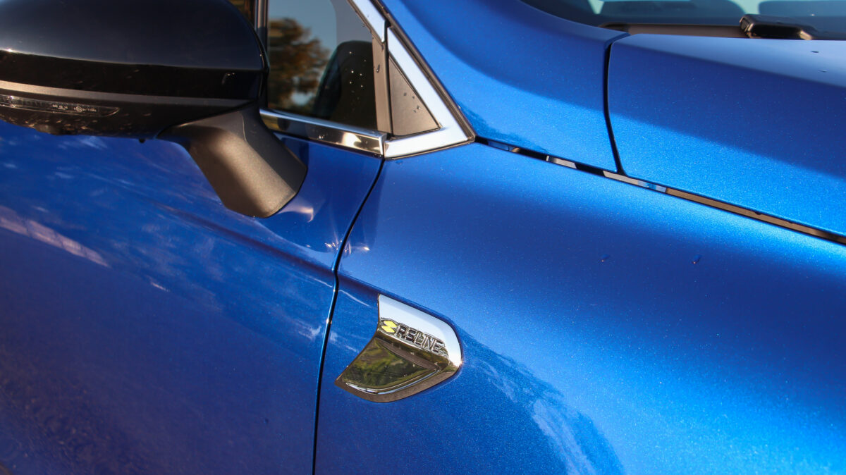 E-TECH Hybrid felirat a B-oszlopon, R.S. Line logó hátul