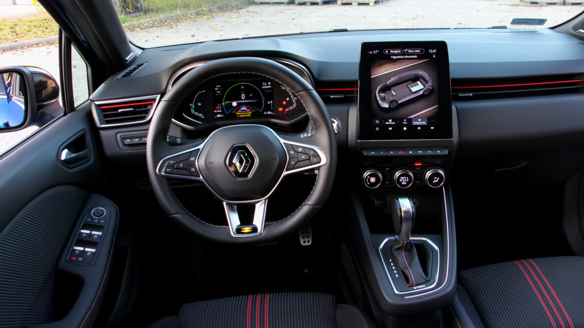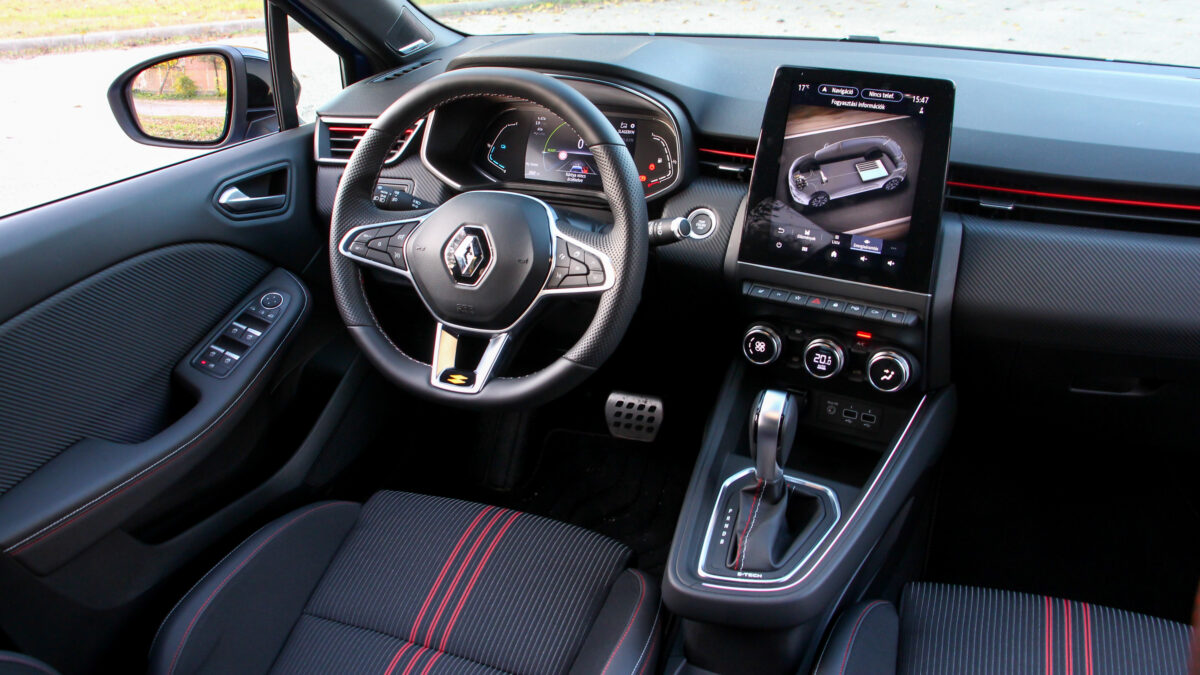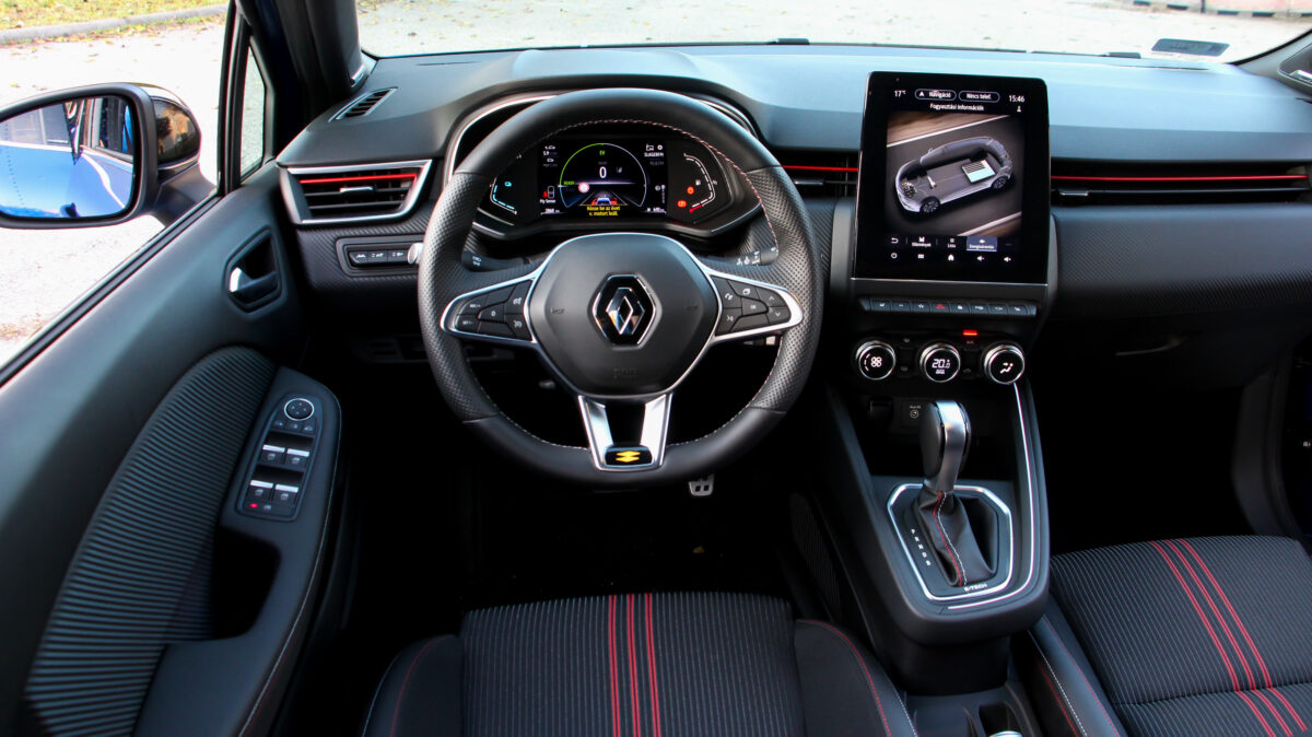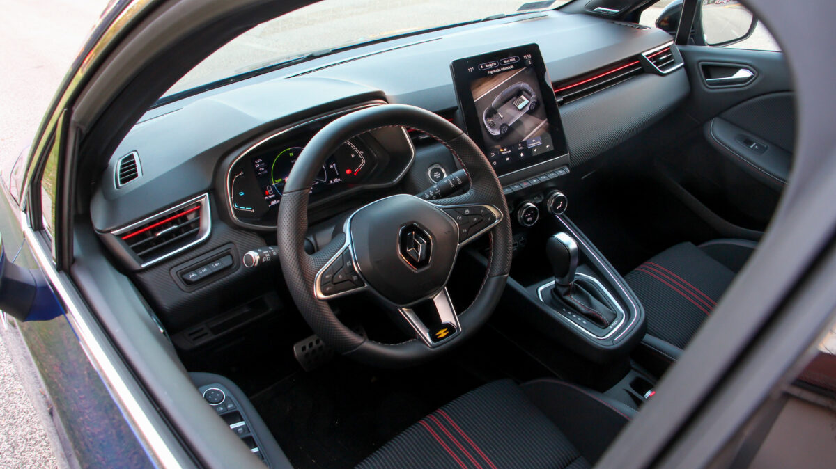 a Clio E-TECH sportos R.S. Line külsővel (és belsővel) is megkapható, a tesztautó is ilyen volt, ez a kínálat egyértelmű csúcsa.