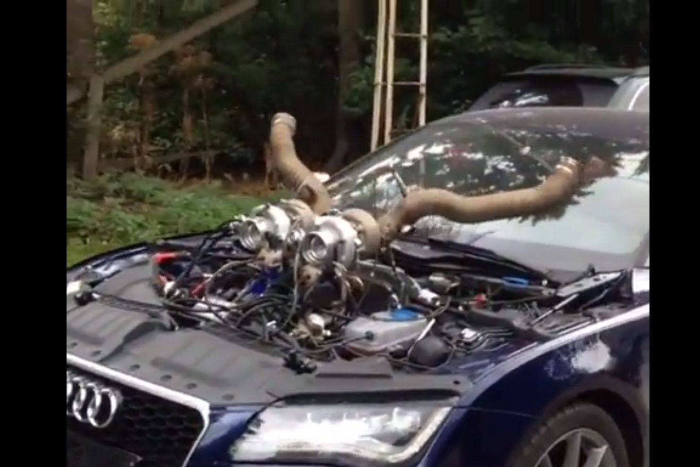Az oroszok nem aprózzák el a dolgokat. Két olyan turbót szereltek az Audi RS7 motorházába, hogy fedél sem jutott rá.
