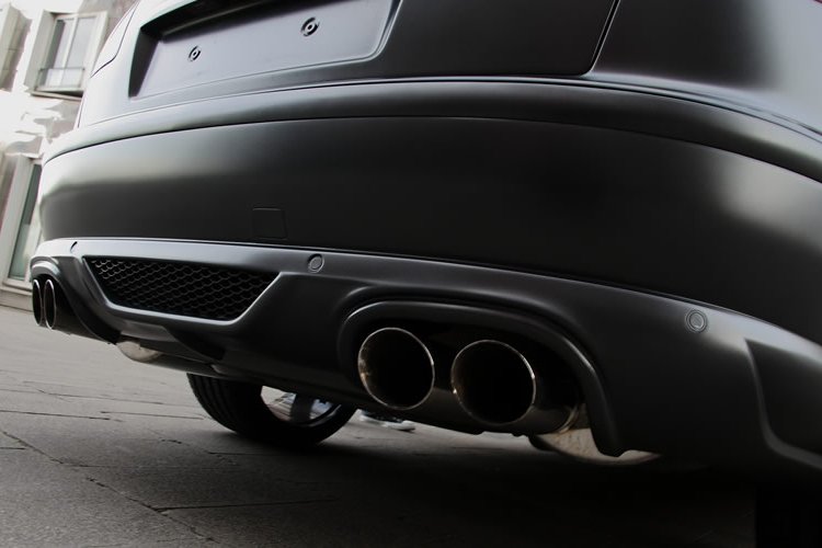Az utastérben is karbonra cserélik a fabetéteket, a kárpitozott részeket pedig steppelt bőr-alcantara kombinációval húzzák át. Így lesz az eredetileg elegáns limuzinból utcai dizájnautó...