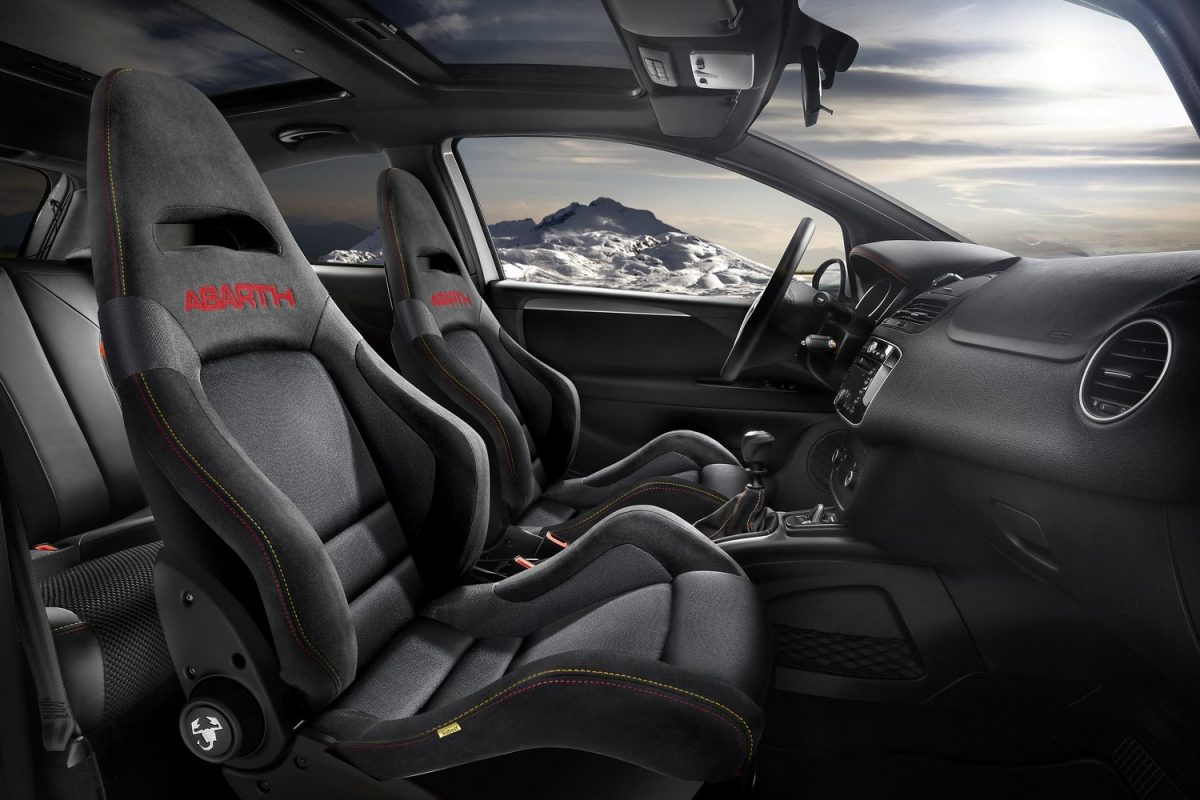 Sötét az alaphangulat, a kasztni fényes fekete fényezést kapott, a motorháztető és a tető matt fekete, középen a kasztni alapszínét viselő csíkokkal. A felni is fekete, mögötte sárga Brembo féknyergek lapulnak. Az utastérben részben alcantarával borított Sabelt kagylóülések találhatók vörös és sárga varrással, mely a bőrbe húzott kormánykeréken, váltón és a műszerek árnyékolópúpján is feltűnik. [BANNER type="1"] Mindehhez kiegészítésképp pedálok, a lábtámasz és egyes díszítőelemek alumíniumból készültek, és még egy speciális téli csomagot is kiadott az Abarth. Az Abarth Nitro csomag az olasz tuningcég és a neves snowboardgyártó együttműködésének eredménye, tartalma pedig négy darab, téli gumival szerelt 17 colos könnyűfém felni, mágnessel felerősíthető hódeszka-tartó és egy lap a Nitro powered by Abarth nevű limitált szériából.