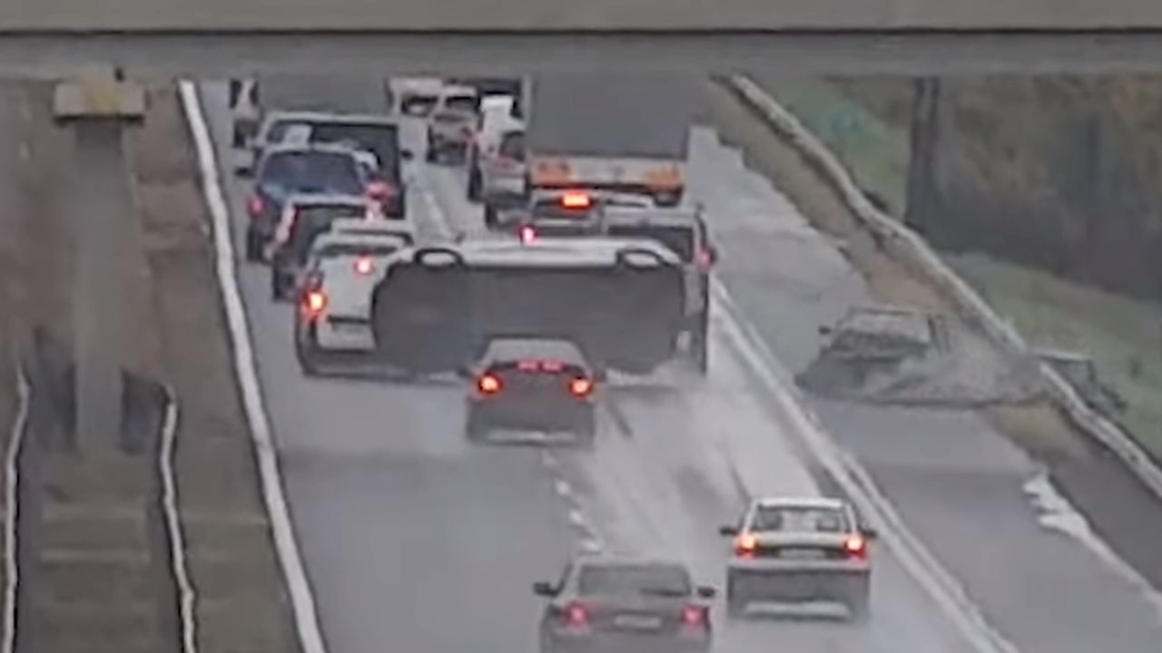 Ismét a figyelmetlenség szülte a bajt az M3-as autópályán. A torlódásban várakozók autók közé nagy sebességgel csapódó kombi először egy furgont, majd a szalagkorlátot találta el - videón mutatjuk az esetet.