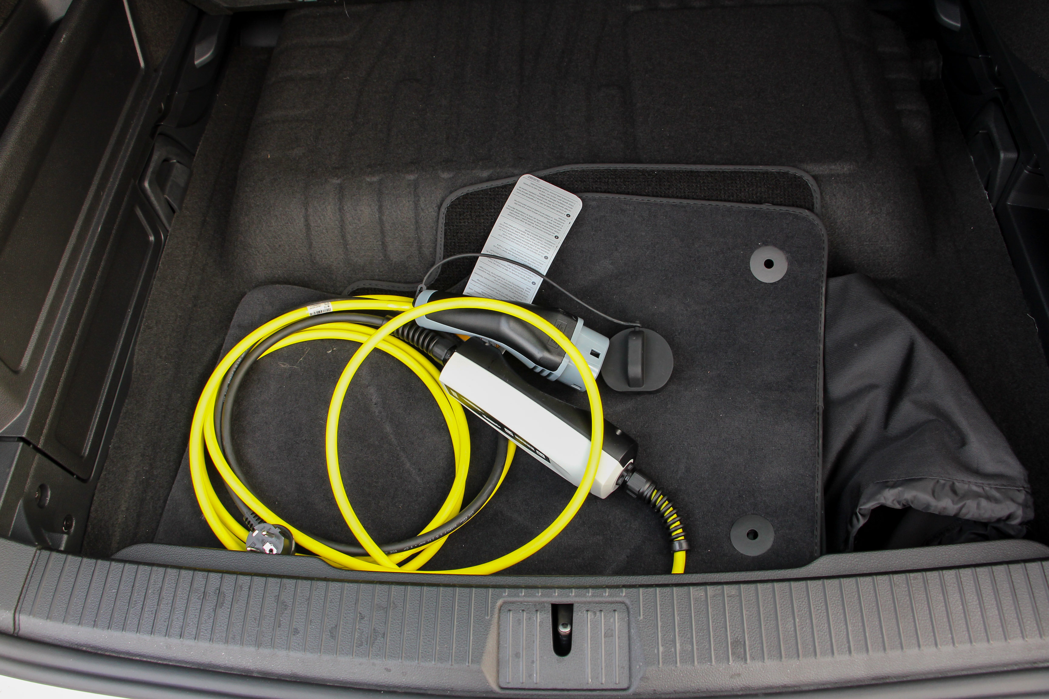 Akár elektromos is lehet a csomagtérajtó, mindenképp távirányítással is dönthető a hátsó ülés. Az üzemanyagtartály a GTE-ben a csomagtér padlójába került, pótkerék így nincs, a töltőnek azért van ott hely