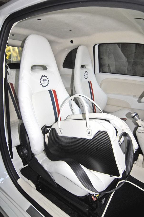 Gondolván arra, hogy az 500-as csajosan pici és formás, spéci táska is jár majd azoknak a vásárlónak, akik egy bőröndnyi pénzért hazaviszik a tíz darab Romeo Ferraris FIAT 500 Abarth Monza Special Edition egyikét. Igen ám, de milyen csaj vesz magának 260 lóerős miniautót? A tuning műhely ugyanis nem aprózta el a dolgot, és miután némiképp sportosabbra csiszolta a karosszériát, értelmet adott azon munkálatoknak, amelyek a Brembo fékek megerősítésére, illetve a futómű átalakítására vonatkoztak. Az 1,4 literes turbómotor már a gyári FIAT 500 Abarth kivitelt is izgalmassá teszi, de a Romeo Ferraris nagyobbra cserélte a feltöltőt, az intercoolert, új a vezérlőprogram, és nemesacél sportkipufogón keresztül távoznak a gázok. A végeredmény szerénynek éppen nem mondható 260 lóerő, és annak érdekében, hogy a kis méregzsák vezethető maradjon, önzáró differenciálmű segít. A váltó hatfokozatú, szekvenciálisan kapcsolható félautomata, a 17 colos felnikre pedig Yokohama Parada gumiabroncsokat húztak.