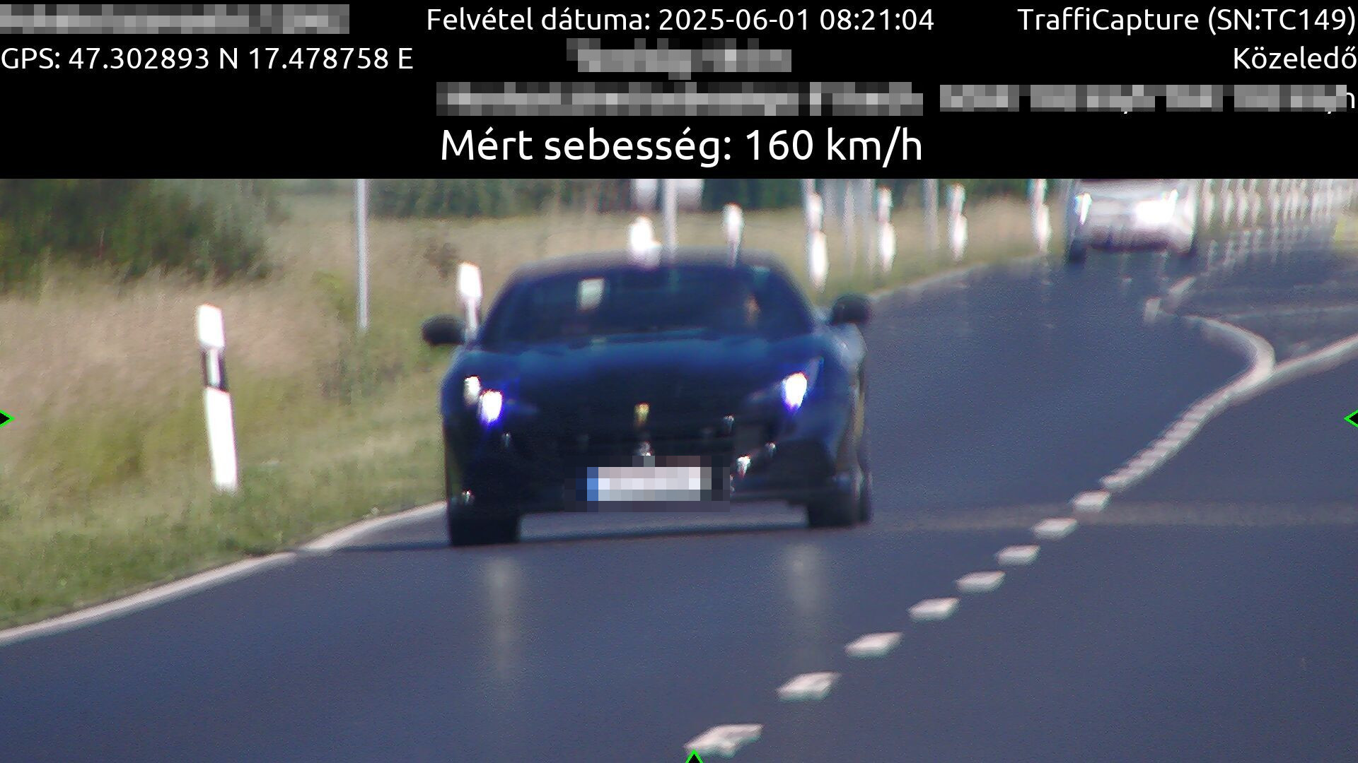 Az egyenruhások vasárnap délelőtt a 83-as számú főúton, Pápa külterületén kapták lencsevégre a fekete Ferrarit, amelynek sofőrje a megengedett 90 km/h helyett 160 km/órával száguldott el a traffipax előtt. A Veszprém vármegyei rendőrök azonnal el is dicsekedtek a "nagy fogással" a hivatalos Facebook oldalukon. Az autó vezetőjének jó eséllyel nem jelentett problémát a 140 ezer forintos közigazgatási bírság megfizetése, ám ezen felül 6 büntetőpontot is kapott. Ez utóbbit már jóval kevésbé éri meg gyűjtögetni, hiszen alig néhány hasonló gyorshajtással már ugrik is a jogosítvány. A rendőrök a fotó megosztásával arra szeretnék felhívni a figyelmet, hogy a sebességhatárok mindenkire egyformán vonatkoznak, akár Ferrarival jár, akár Trabanttal.