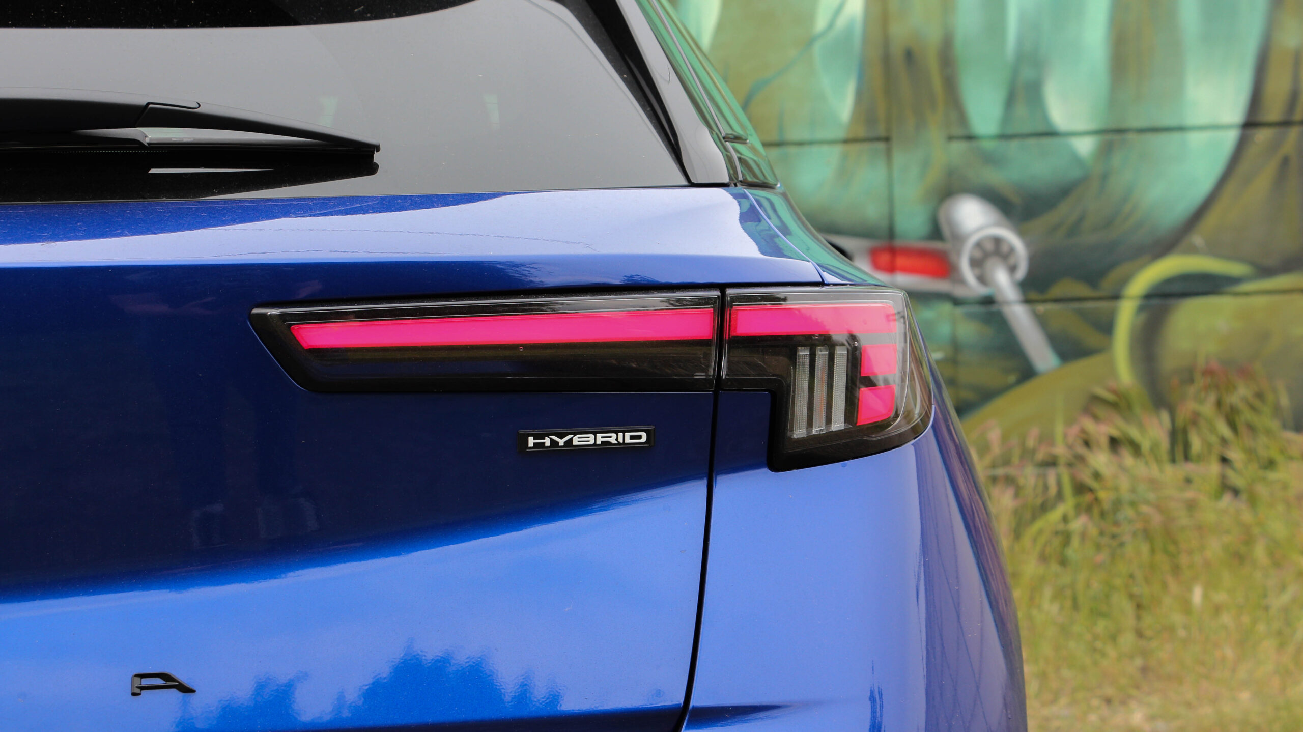A lágy hibrid és az elektromos közti különbséget könnyedén elintézhetném a hatósági jelzéssel, hiszen csak utóbbi jogosult a zöld hátterűre. Viszont a nagyító alatt feltűnik más is. A belső égésű motoros kiviteleken valamivel nagyobb a Vizor és a rendszám közötti hűtőrács. Hátul az „e” betű a villanyos privilégiuma, míg a kipufogó értelemszerűen erről hiányzik.