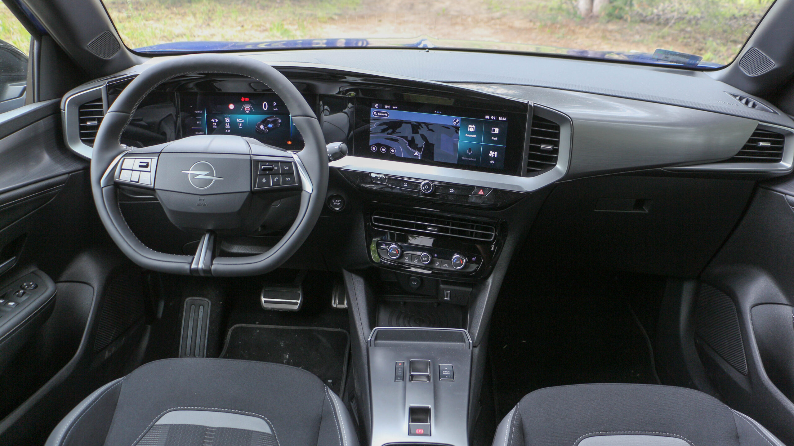 A műszerfalon 10 colos digitális műszeregységet találni, mellette ugyanekkora érintőképernyő. Utóbbinál újdonság, hogy mostantól ez alapáron jár. A frissített Mokkába új lapkakészlet kerül, így a szoftver is teljesen új, ahogy annak dizájnja is. Számomra még így is túlbonyolított, a legtöbb funkció legalább két kattintásból érhető el, ráadásul a gyorsasága sem túl meggyőző. Ellenben a CarPlay és az Android Auto vezeték nélkül is csatlakozik, így ez nem feltétlenül jelent akkora gondot.