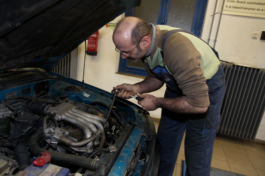A motor állapotának megállapításához bevetett másik módszer a kompressziómérés. A kopottságot itt az izzító-gyertyánál csatlakoztatott kompresszió-mérő vizsgálta, egészen pontosan azt mérte, hogy az önindító által hajtott motor égésterében mekkora nyomás tud kialakulni. A négy hengerből háromban gyakorlatilag a gyári kompresszió-értéket mértük, a kettesben azonban alacsonyabb értéket rajzolt a műszer. Ennek okát egy ismételt mérés és a dugattyúgyűrűre öntött néhány milliliter motorolaj adta meg, úgy már tökéletes volt a zárás, a többi hengerben mért értéket kaptuk, a gyűrű, vagy a henger tehát ha nem is vészesen, de a többi hengerénél komolyabb mértékben kopott. Messze nem annyira, hogy beavatkozásra szorulna, a motort alapvetően nagyon korrektnek találta Tamás, de a biztonság kedvéért, a már kiszerelt izzító-gyertyákat is letesztelte. Gyorsan, erőteljesen izzottak, így továbbra sem kell aggódnunk a hidegindítások miatt. Nyitott gépháztetőnél egyértelműen látszott a borzalmas alapjárati rezonancia oka: a motortartó bakok már a végüket járják, ennek ellenére az Istvánko szakembere sem javasolta cseréjüket: a gyári vélhetően csillagászati áron kapható, az utángyártottakban nem bízik – hasonló vélekedés miatt maradtak eddig is.