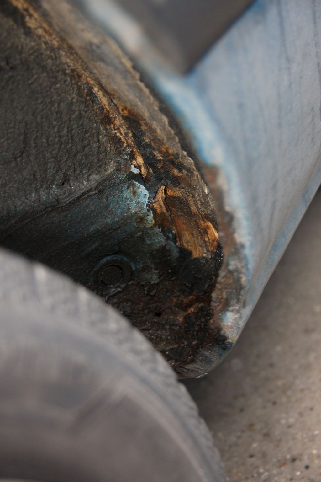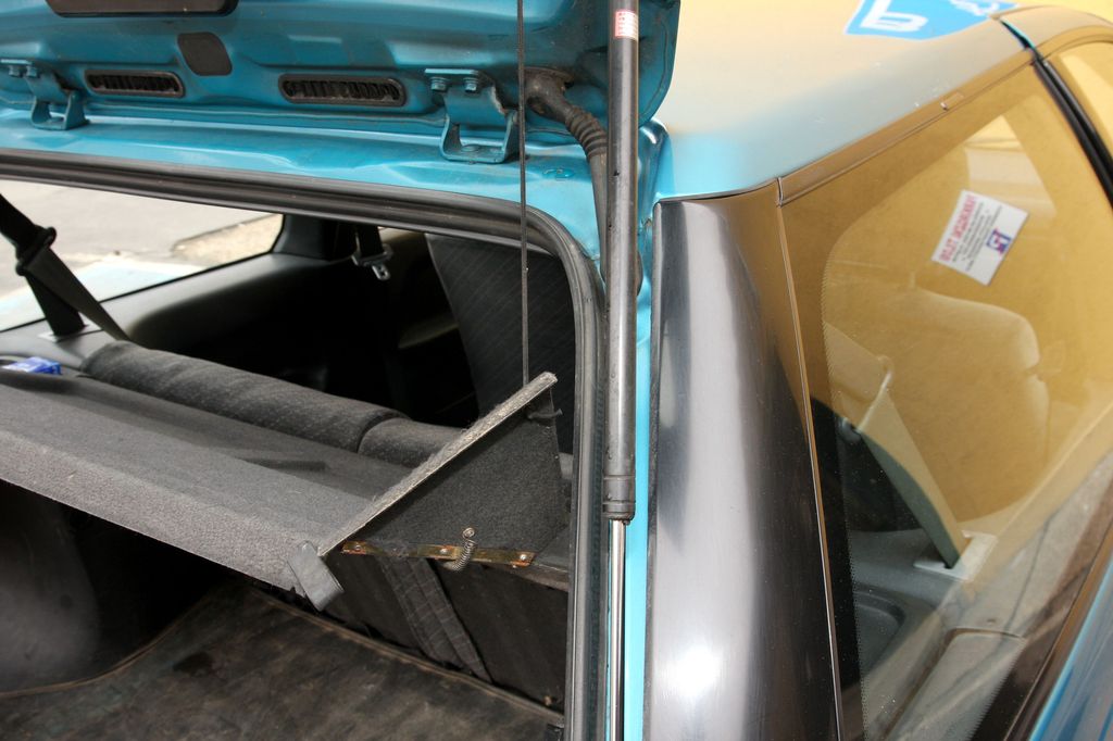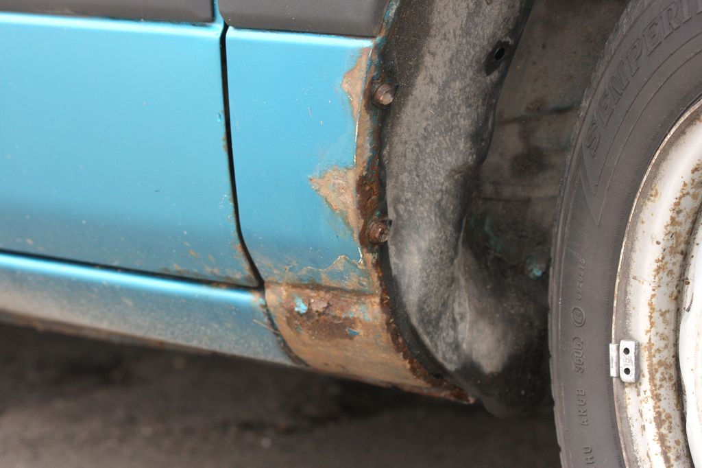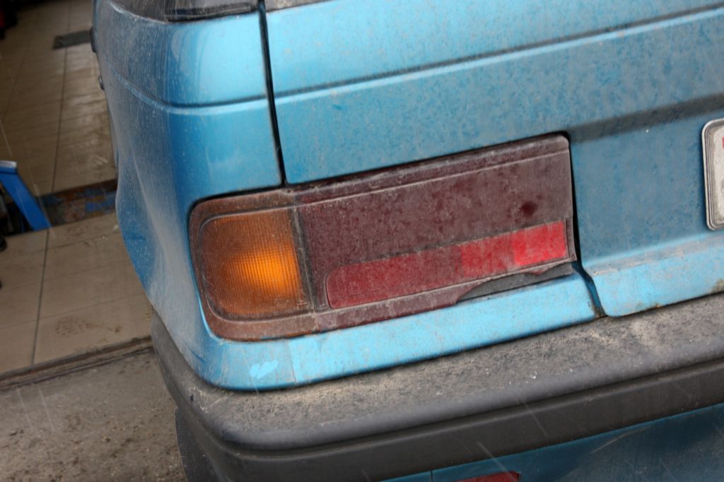 Hátulról volt sajnos egy-két apróbb és egy komolyabb sérülés is, a köténylemez és a csomagtérajtó fényezése sem a gyári, a kittelt elemek sajnos rozsdásodnak is. Nagyobb baj, hogy már az amúgy sértetlen küszöböket is kikezdte az oxidáció. Hamarosan elkerülhetetlen lesz a lakatolás