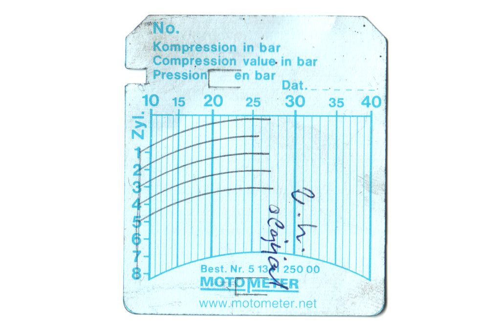 Nincs komoly gond a motor kompressziójával, de a második henger dugattyúgyűrűjének kopása a többiénél jelentősebb