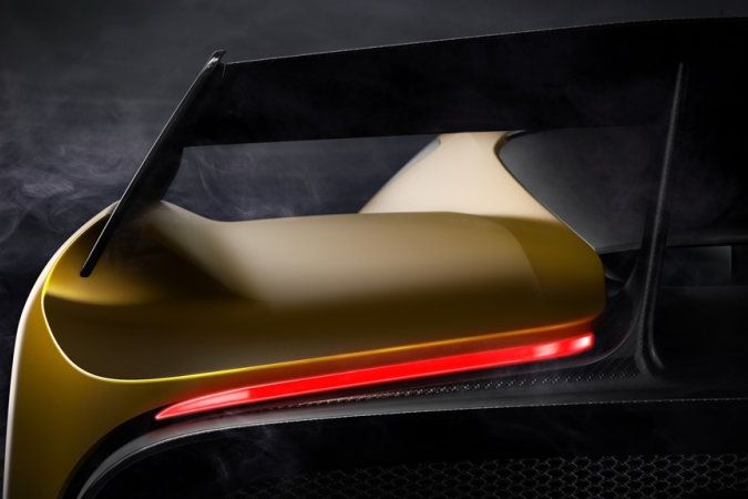 Az első részletfotó vélhetően az autó bal hátsó sarkát mutatja. LED lámpákkal és hatalmas hátsó szárnnyal várható a Fittipaldi EF7 Vision by Pininfarina