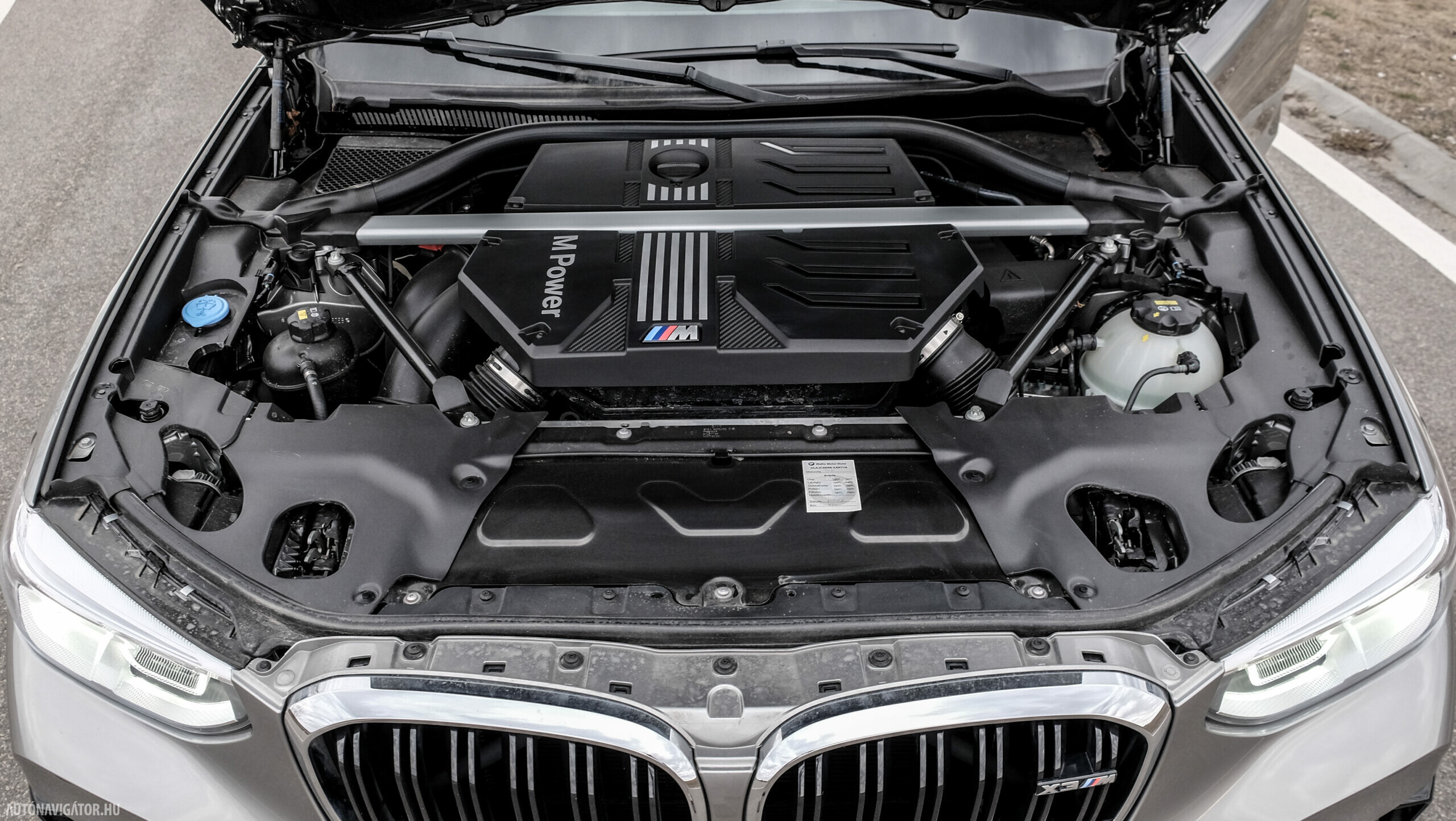 Egészen egyedi a levegőrendszer is, miután nem a menetszél hűti a töltőlevegőt. A turbók felé haladó friss levegőt a hengerfej fölötti dobozba épített vizes intercooler hűti, ezzel stabilabban tarthatják a levegő hőmérsékletét. Olajozását is a nagyobb igénybevételnek megfelelően tervezték, miután az X3 és az X4 M oldalgyorsulásban képes elérni az 1 G-t, ami már nem csak az emberi testnek megterhelő, de a technika stabil működését is befolyásolhatja. A magas teljesítmény és a jó gázreakció érdekében egészen magas nyomásra állították a befecskendezőket, 350 bárral érkezik a hengerekbe az üzemanyag. Ennek egyetlen negatív hozadéka a motor alapjárati hangjában jelentkezik, konkrétan dízeles csattogást rendez, így az autón kívül állva a hangélmény kicsit karcos. Fordulaton viszont vigyázzba állítja az összes szőrszálunkat, a hangélmény őrülten jó. Olyan igazi, olyan vérbő, pont, amilyennek a BMW sorhatosait szeretjük, ráadásul 6250-es fordulatszámig forgatható, és nem igazán kell rá sokat várni, hogy ezt elérje. Annyira éles a gázreakció, hogy szinte csak gondolni kell a gázadásra, máris felpörög a hat henger és a 7000-es fordulat feletti tiltás előtt picivel 480 lóerőt szabadít el, a 600 Nm csúcsnyomaték pedig már 3000-es fordulat alatt kihasználható.