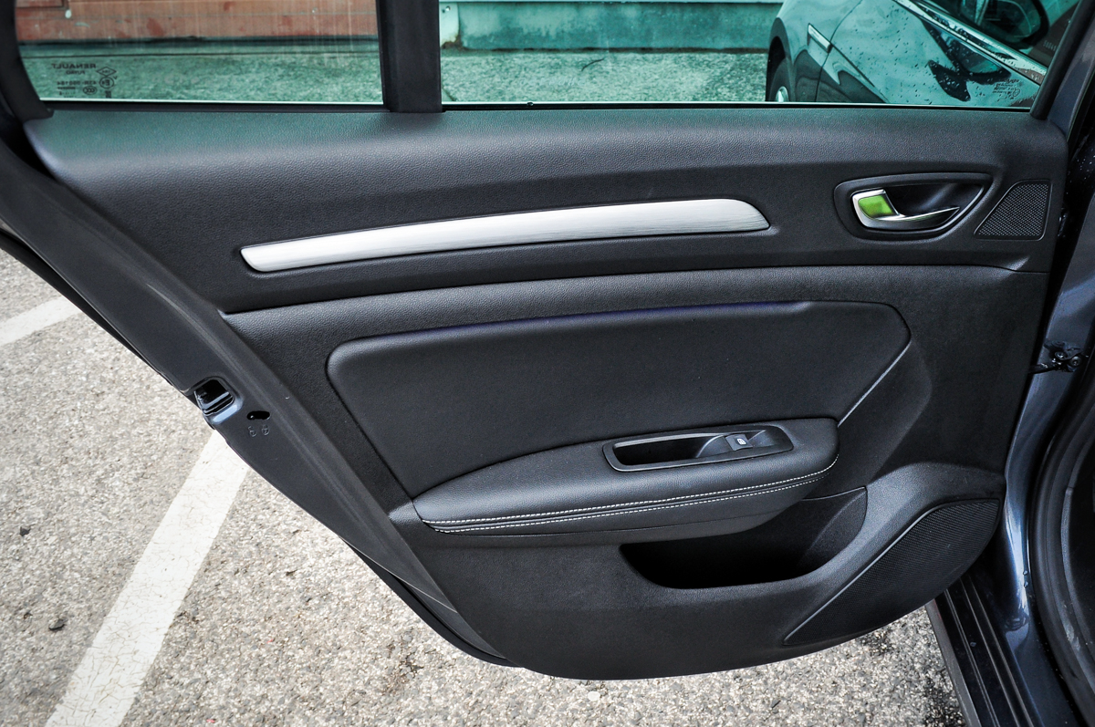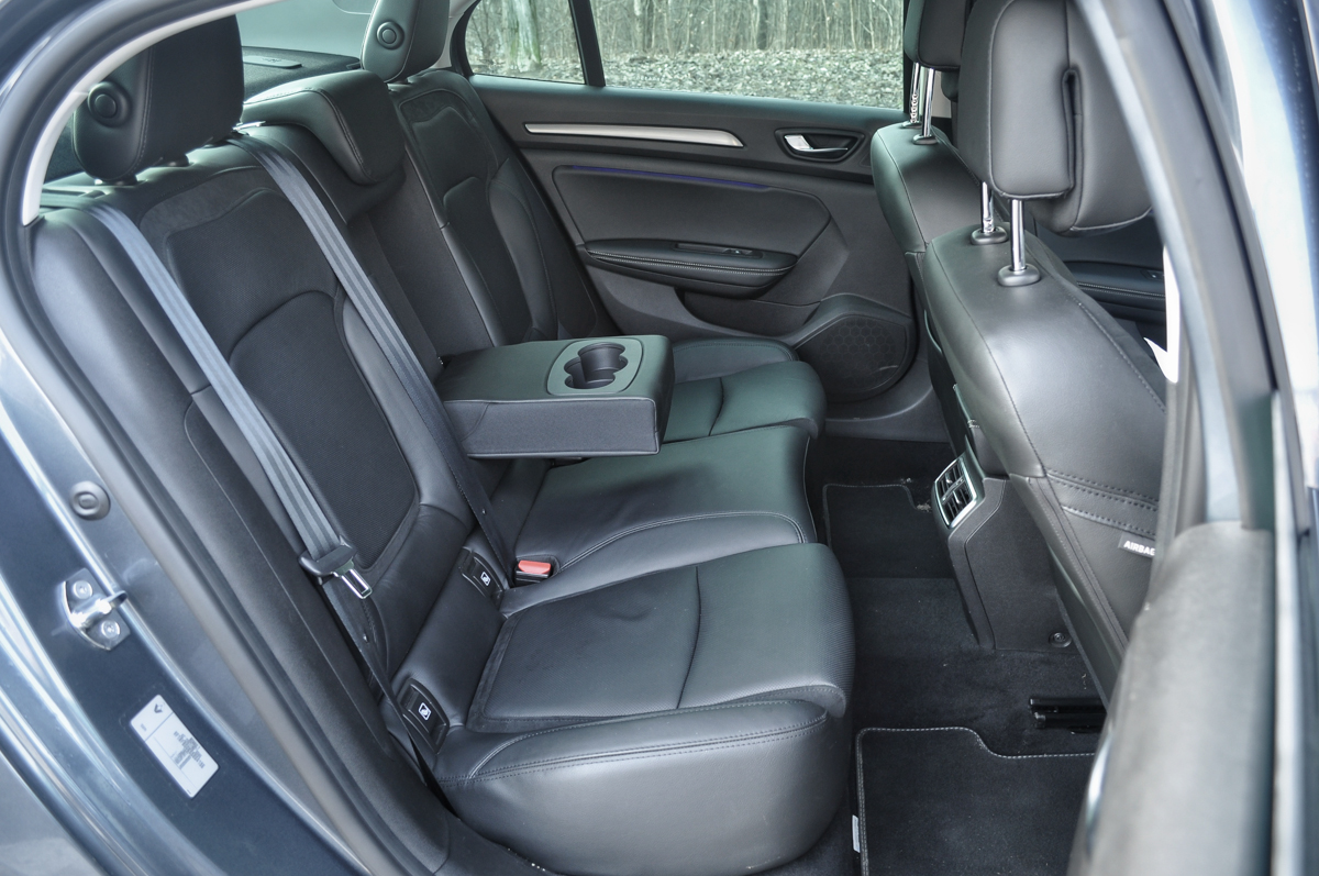 Micsoda kialakítás! 350 000 forintért fekete bőr-alcantara borítású ülések fogadnak. A sofőrülés oldalán is aktiválható a masszírozó funkció, mert a Mégane-ban is ilyen van. Lazító, frissítő és gerinc módokkal. Nem mondhatjuk, hogy nem kényeztet el minket. Minden ablaka automata, a légkondit hátra is elvezették, ráadásul bőségesen elfértem magam mögött, kb. 5 cm maradt a térdem és az ülés között. A fejtér már nem ilyen komfortos, a hátsó helyekre való beszálláskor sokan verték be a fejüket a kupés ajtóvonalba, bent pedig a plafont érte a hajam. A térérzet kisebb, mint a konkurensekben, pedig a 2711 mm-es tengelytáv kategóriaelső. A hátsó sor két szélső helye isofixes, a középső helyből pohártartós könyöklő hajtható ki. A hangzás nem csak elöl, hátul is szuper, a mélyhangot szépen kihozza mindenféle recsegés nélkül a hangrendszer. A csomagtér a kategória egyik, ha nem a legnagyobbja. Alapból is 550 literes, amibe a csomagtérajtó belenyíló zsanérjain zavarnak csak bele. Támladöntéssel 987 literes bővíthető. [BANNER type="1"]