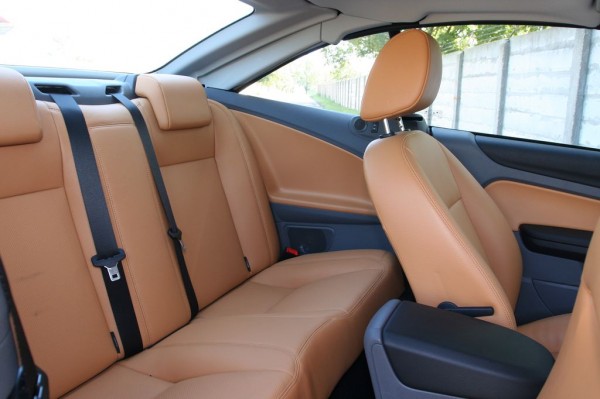A hátsó fűtés hiánya több szempontból is sajnálatos. Egyrészt, mert ami a CC helykínálatát illeti, ha elöl nem két lepattanószerző ül a helyi kosárcsapatból, hanem normál méretű, és esetleg még akár előzékeny sofőr és utas, akkor hátulra nem szükséges kitenni a Csak gyerekeknek táblát. Ugyanakkor pedig az igazi kabriófetisiszták a CC-ben amúgy is inkább hátra ülnek, mivel rendes nyitott autós szélerősség csupán itt tombol, az első fertály környékén ugyanis csak valami gyengéd fuvallatféle lengedez (felszerelt szélfogóval, 65 ezerért még az sem), köszönhetően a rendkívül lapos szögben álló első szélvédőnek, mely olyannyira rányúlik az utastérre, hogy az elöl helyet foglalók feje szinte a napellenzők alatt található.