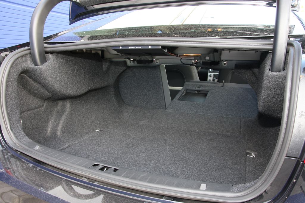 Alapesetben sem óriási, 380 literes a csomagtér, mely a limuzinoktól megszokottan szűk átjáróval, csak támladöntéssel, de nem nem túl nagy lépcsővel és hosszúra bővíthető
