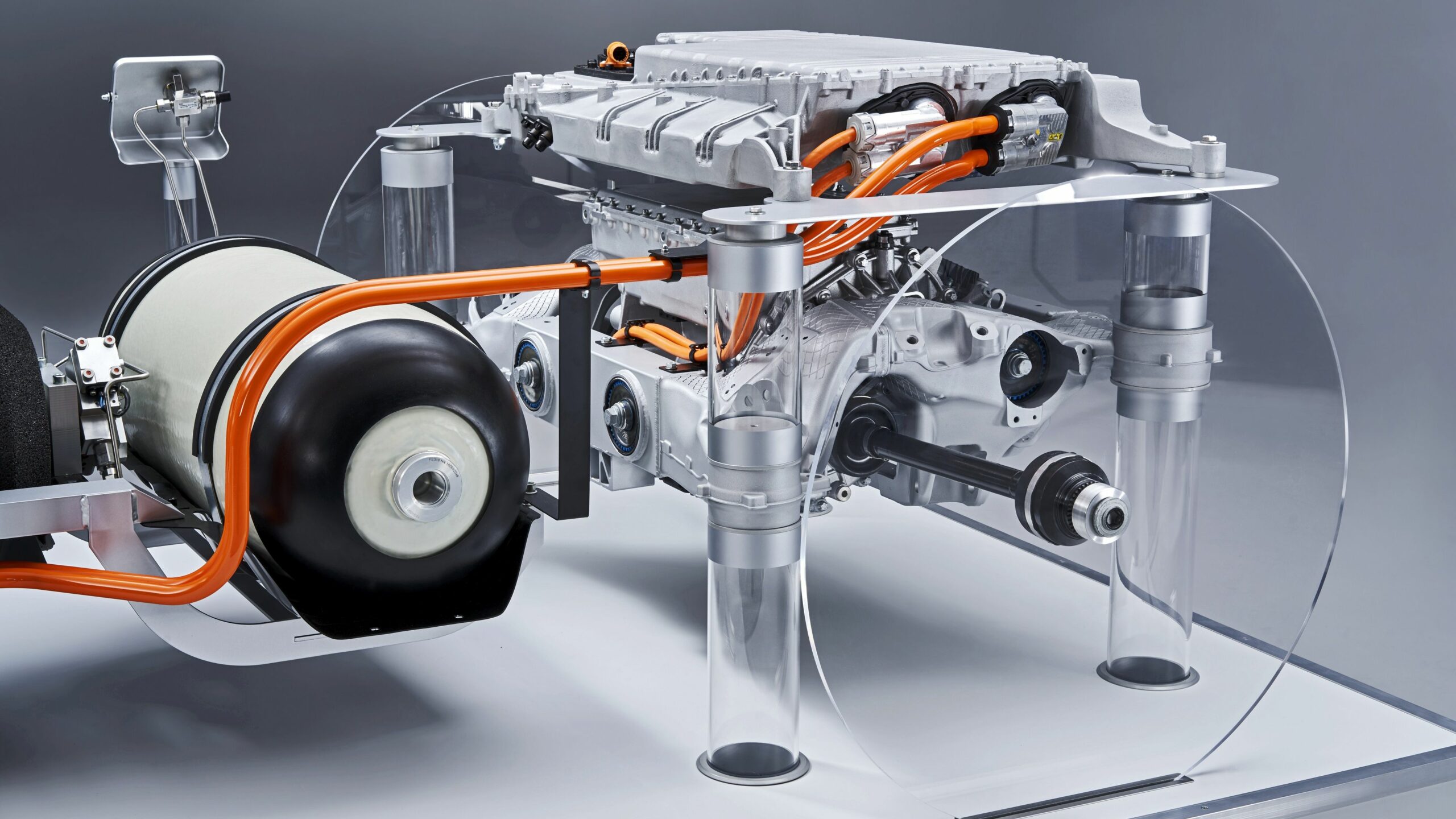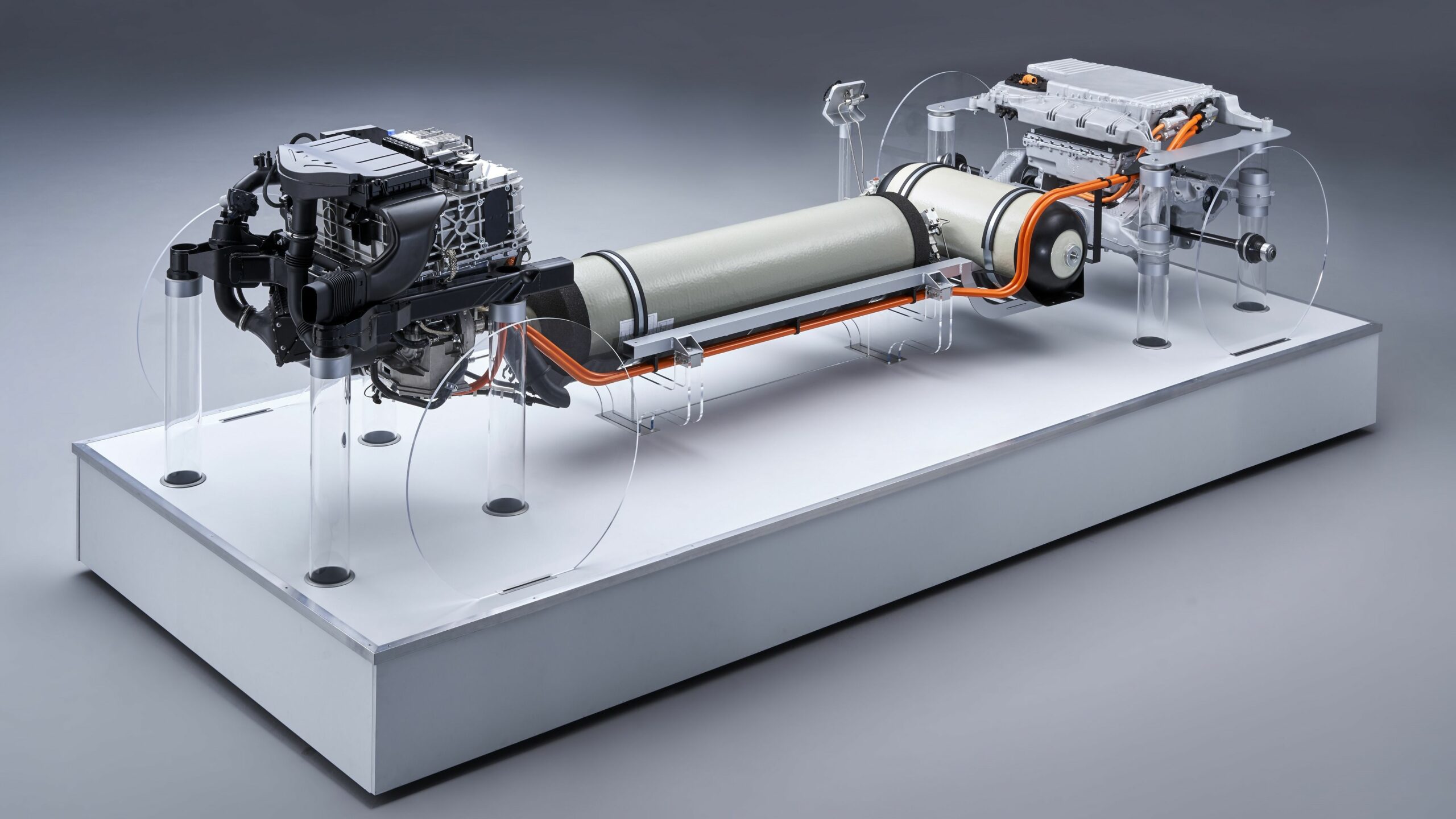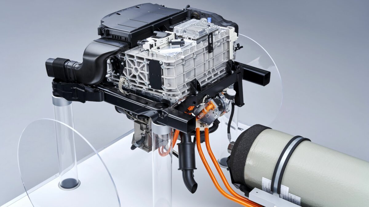 Elöl található az üzemanyagcella-egység, alatta pedig az elektromos átalakító
