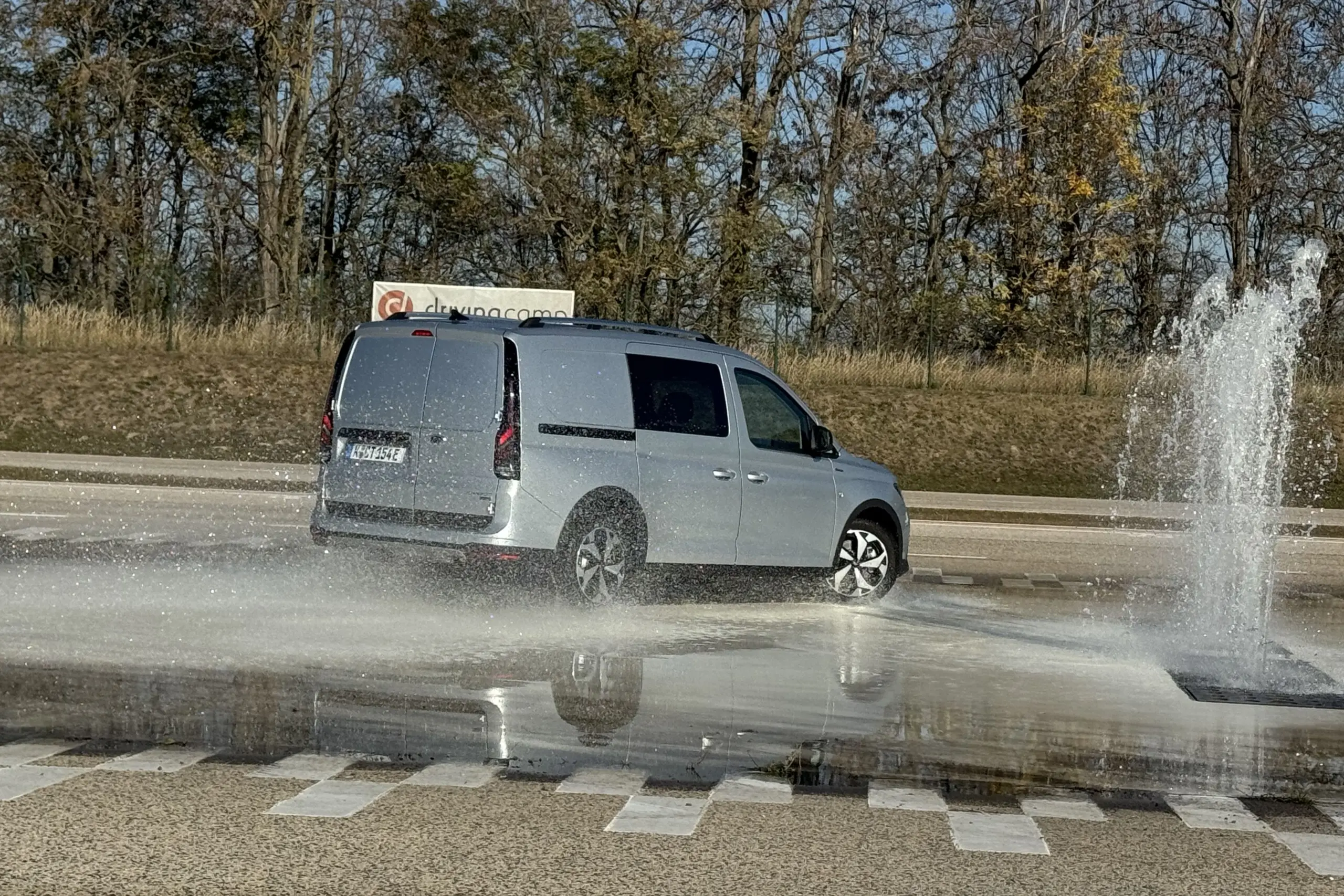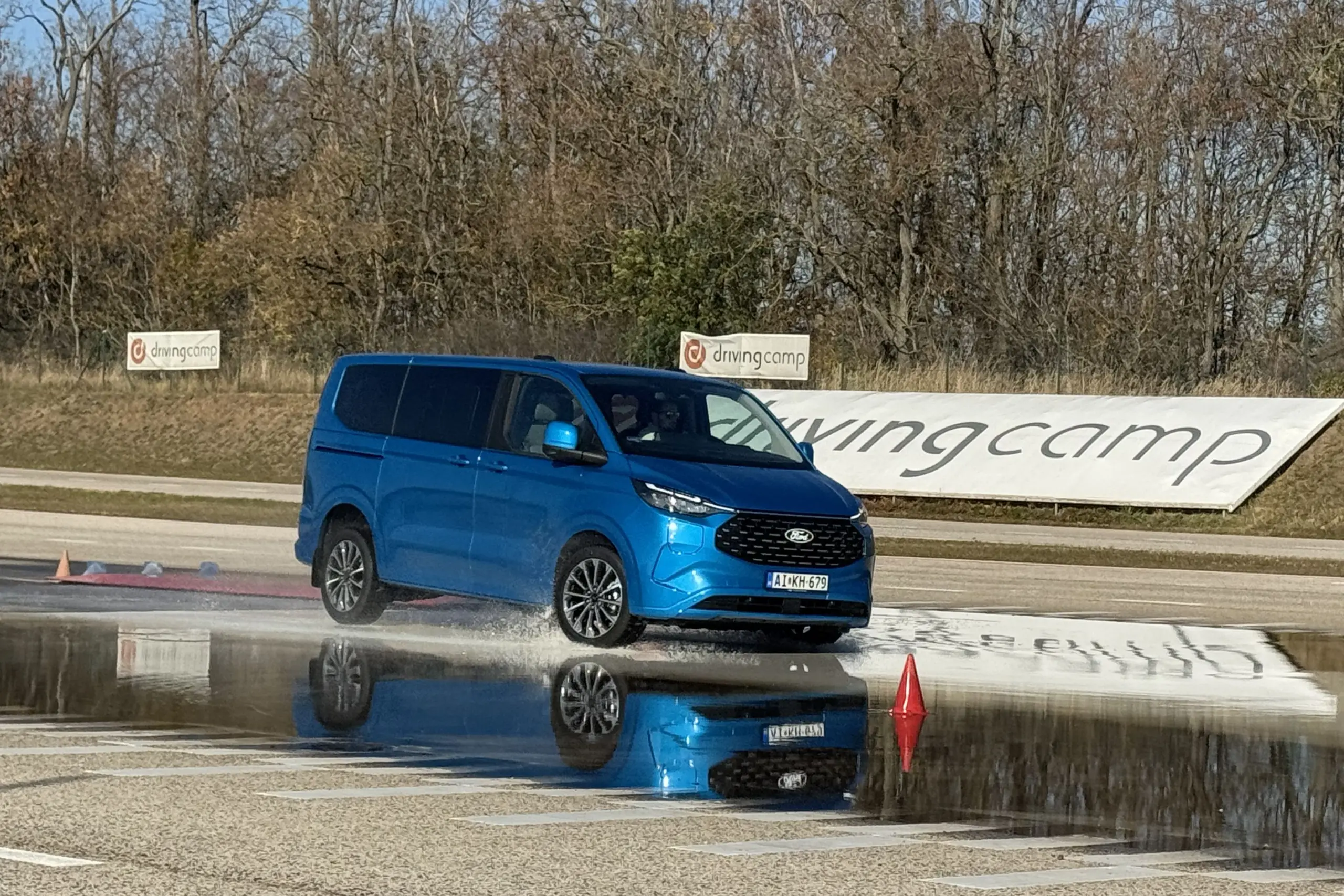 Végül a sima Transit név jelenti a nagy furgont, amiből szintén létezik már tisztán elektromos. Ennek már minimum 5,7 köbméteres a raktere, de elérhető 15,1 köbméteres is, vagy személyszállító esetleg alvázas konstrukció, amire szabadon lehet felépítményt rakatni. Itt már kétféle akkumulátor közül lehet választani. A kisebbik 68 kilowattórás, a nagyobb pedig 89 kWh kapacitású. Utóbbival akár a 402 kilométeres hatótáv is elérhető, és Európa legkelendőbb villanyfurgonja ebben a kategóriában. Röviden így néz ki a Transit kínálat, a vezetése pedig mindegyiknek személyautós. A vezetéstechnikai pályán nagyon érdekes volt megtapasztalni, hogy minél hosszabb a tengelytáv, annál stabilabb az autó. A rántópadon a nagy Transit és a Custom szinte megingathatatlan volt, de a Connect és a Courier is bőven uralható maradt, a menetstabilizálók is szépen végezték a dolgukat. Végső soron a vezetési élménye mindegyiknek különleges, és valószínűleg a Transit sikeréhez ez is hozzájárul.