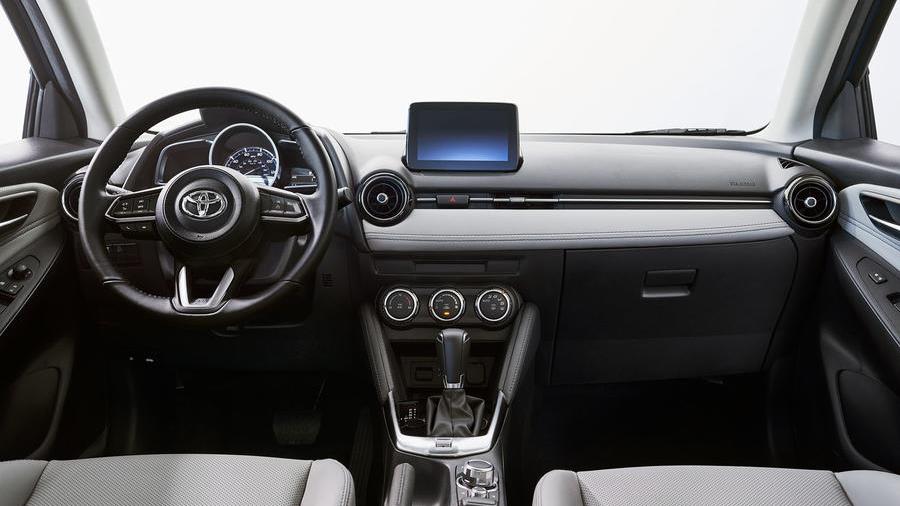 Íme az amerikai Toyota Yaris: bal oldalon a külseje, jobb oldalon pedig a műszerfala látható - ilyen az, amikor a tanár nem csak azt tudja, hogy puskáztál, hanem azt is, hogy kiről (Fotók: Motor1)