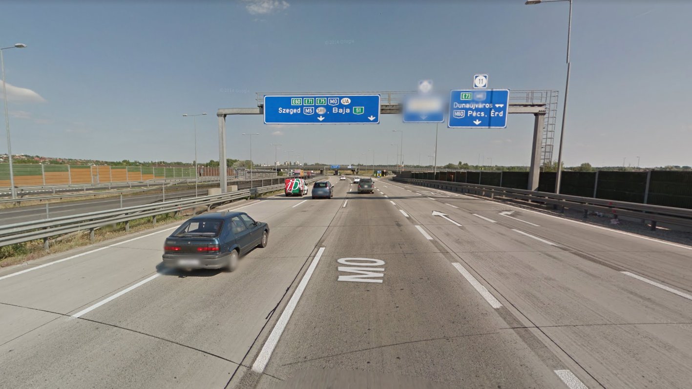 Felújítások kezdődnek az M0 autóút déli szektorában, kétszer két sávon megy majd a közlekedés és több lehajtó nem lesz használható, de lesz új díjmentes szakasz (Fotó: Google Street View)