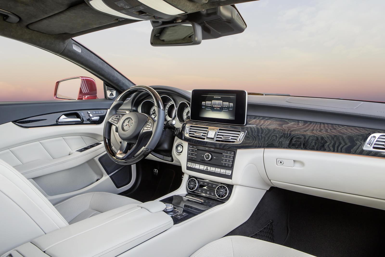 Kicsit nagyobbak lettek a légbeömlők az első lökhárítón és a CLA-éhoz hasonló, gyémántosan csillogó hűtőmaszkot kapott. A kocsi farán a lámpákat sötét színezésűekre cserélték. A 8 colos színes kijelzőről a Mercedes újabb modelljeiben már elérhető navigációs rendszert, kapcsolati lehetőségeket és prémium hifit is kezelhetjük, és most már a CLS-ben is kiáll a műszerfal síkjából, ahogy a többi modellben. A friss CLS legnagyobb attrakciója a teljes egészében LED-es fényszóró, ami 24 fényforrásból áll. Ezeket négy kontrolleregység állítja automatikusan egy kamera képe alapján, másodpercenként akár ezerszer. Természetesen észleli a szembejövő autókat, nem vakítja őket el, és a kanyarívekbe is bevilágít. A navigáció adatait felhasználva optimalizálja a fényforrást kereszteződésekben és körforgalmakban.