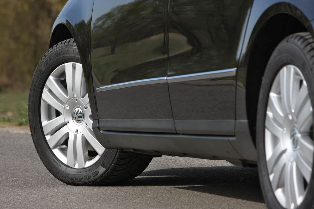 Alapáras 16 colos felniken, de az opciós tetősínnel, krómkeretes oldalablakokkal, metálfekete színben jól mutat a Passat, ugyanakkor messze nem olyan hivalkodó, mint az extralistája