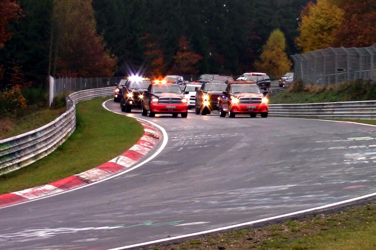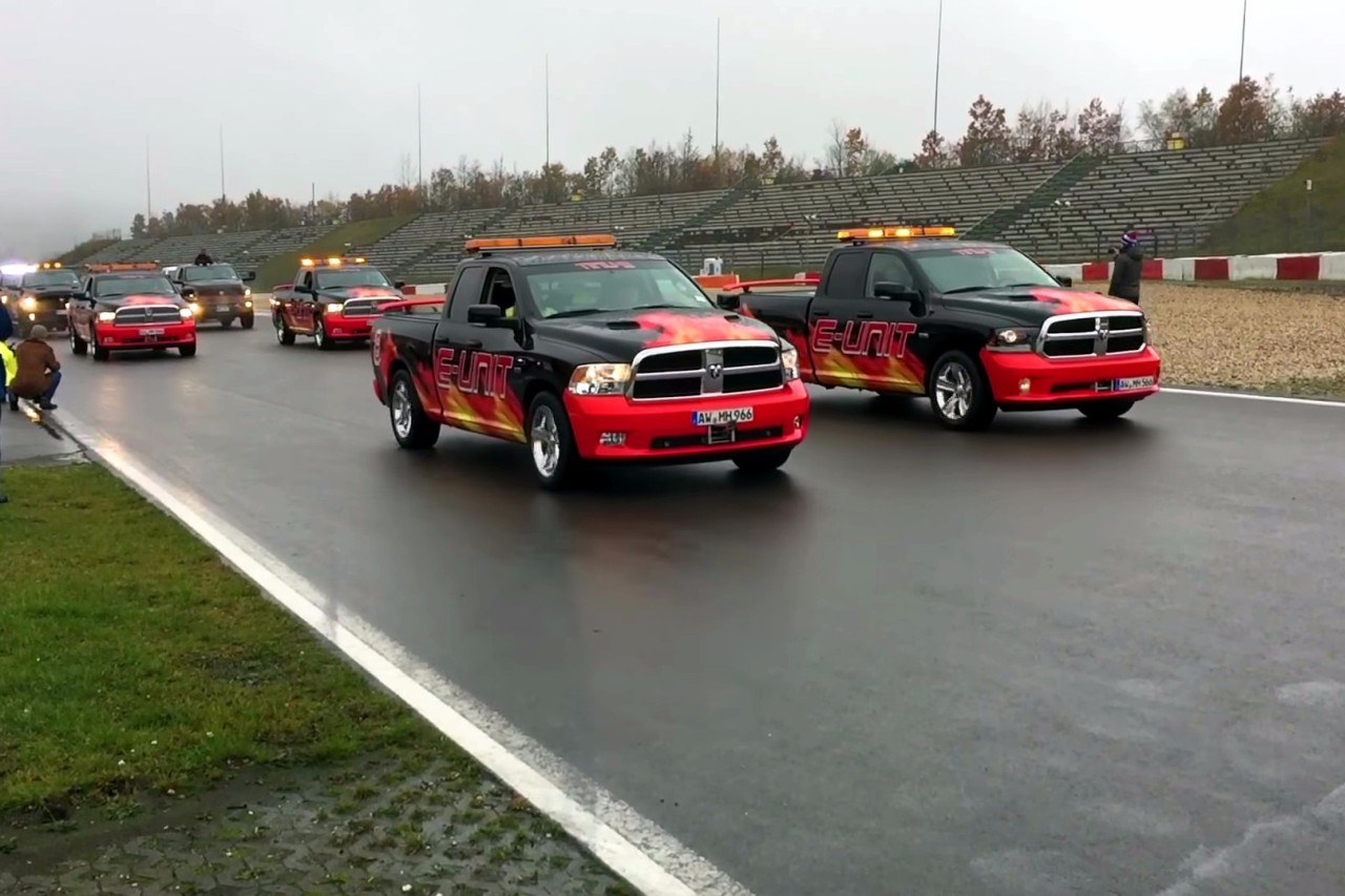Hivatalosan 1152 Ram pickup koptatta egyszerre a Nürburgring aszfaltcsíkját, így ez az új „Legtöbb pickup egy helyen” rekord, bár állítólag volt aki legalább 1300-at számolt. Furcsa versenyszám, annyi biztos, pláne azért, mert Európában hivatalosan soha nem forgalmazták a Ram, illetve korábbi nevén Dodge Ram pickupot. Ezzel egyébként a tavaly júliusban, 638 pickup részvételével, Mexikóban felállított rekord dőlt meg. A mostani vonulásban a pickupok sorát a Nürburgring saját Ram pickupjai vezették, a teljes konvoj elvonulása pedig fél óráig tartott.