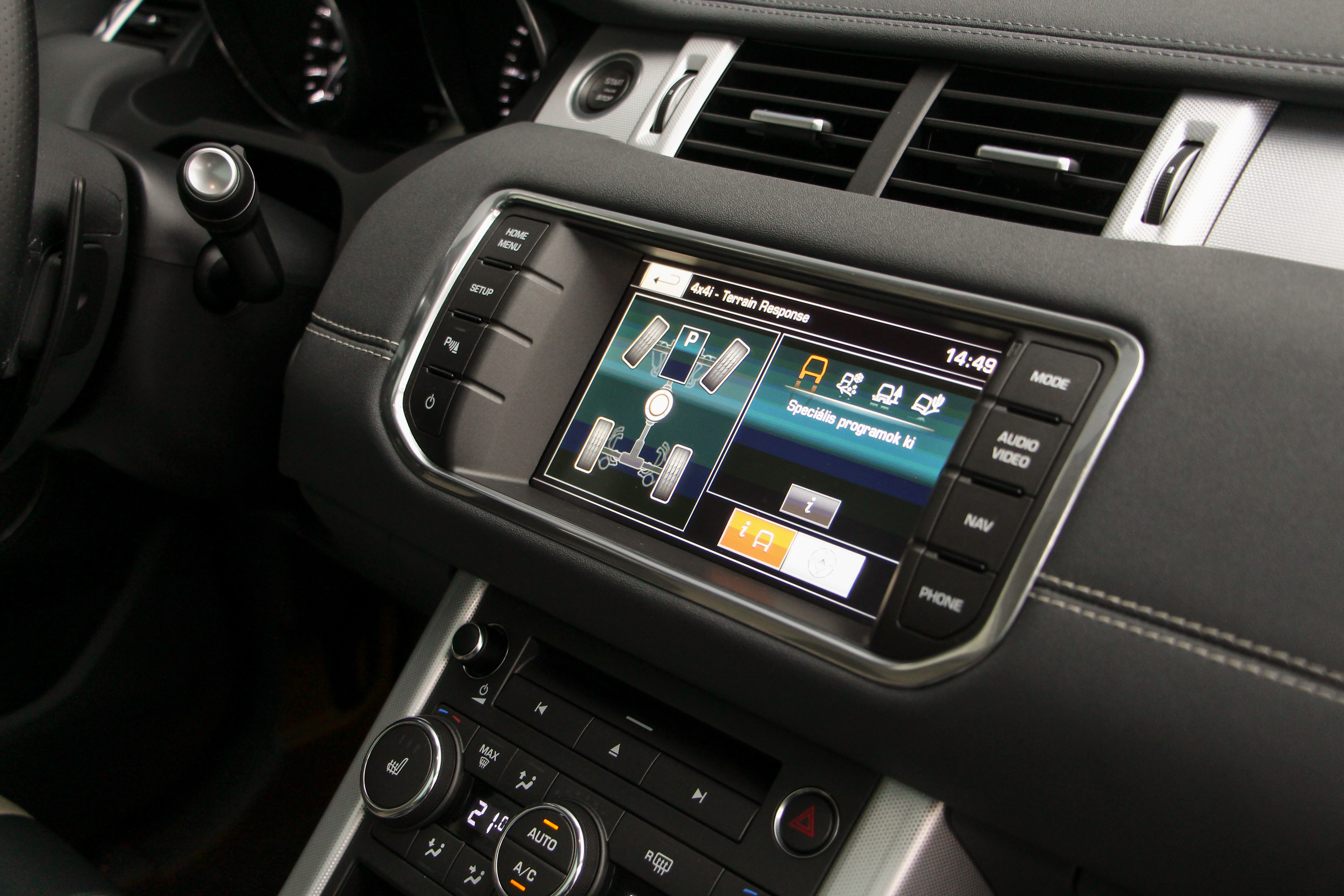Az Evoque hajtáslánca ismerős: a 2,2-es Ford/PSA eredetű dízel kellemes, 420 Nm nyomatékot és a 9 fokozatú automata váltóval elég hosszú áttételezést, autópályán (130 km/óránál) is 2000/perc alatti fordulatot ad. A fogyasztás az ígért 6 literest csak országúton tudja hozni, városban inkább annak másfélszerese - az önsúly közel 1,8 tonna, a 100-as sprint pedig 8,5 másodperc. Tehát valamit valamiért! Az új autónál megjegyeztem, hogy magas a gördülési zaj a 20 colos kerekekkel, ezzel most vizes úton mentem egy rövidebb kört, egyáltalán nem volt bántó. A hajtáslánc (elektronikusan zárható központi osztóművével) egyébként sokkalta többet tud, mint amit a Dynamic lökhárítói a terepszögekkel engednek. Az is biztos, hogy közúton is tud segíteni a négykerékhajtás, ami itt különféle programokat is kínál - utóbbiak természetesen az ESP vezérlését is befolyásolják. Ezeket a középkonzol érintőképernyőjén magyar nyelvű, a műszerblokk egérmoziján angol feliratokkal követhetjük. Kettős a navigáció is: a menürendszer magyar, a hangutasítás angol nyelvű. Viszont legalább ékes brit kiejtéssel beszélő, tehát nyelvleckének is felfogható. A rendszer működik, de maga a menü elég lassú, dugókerülésben nyilván jobb a Waze, itt viszont a parancsok a head-up display-re is kikerülnek. Kipróbáltam, tökéletesen működik a kihangosító is, ami szintén iszonyat fontos, mert nem mindegyik gyári rendszer az.