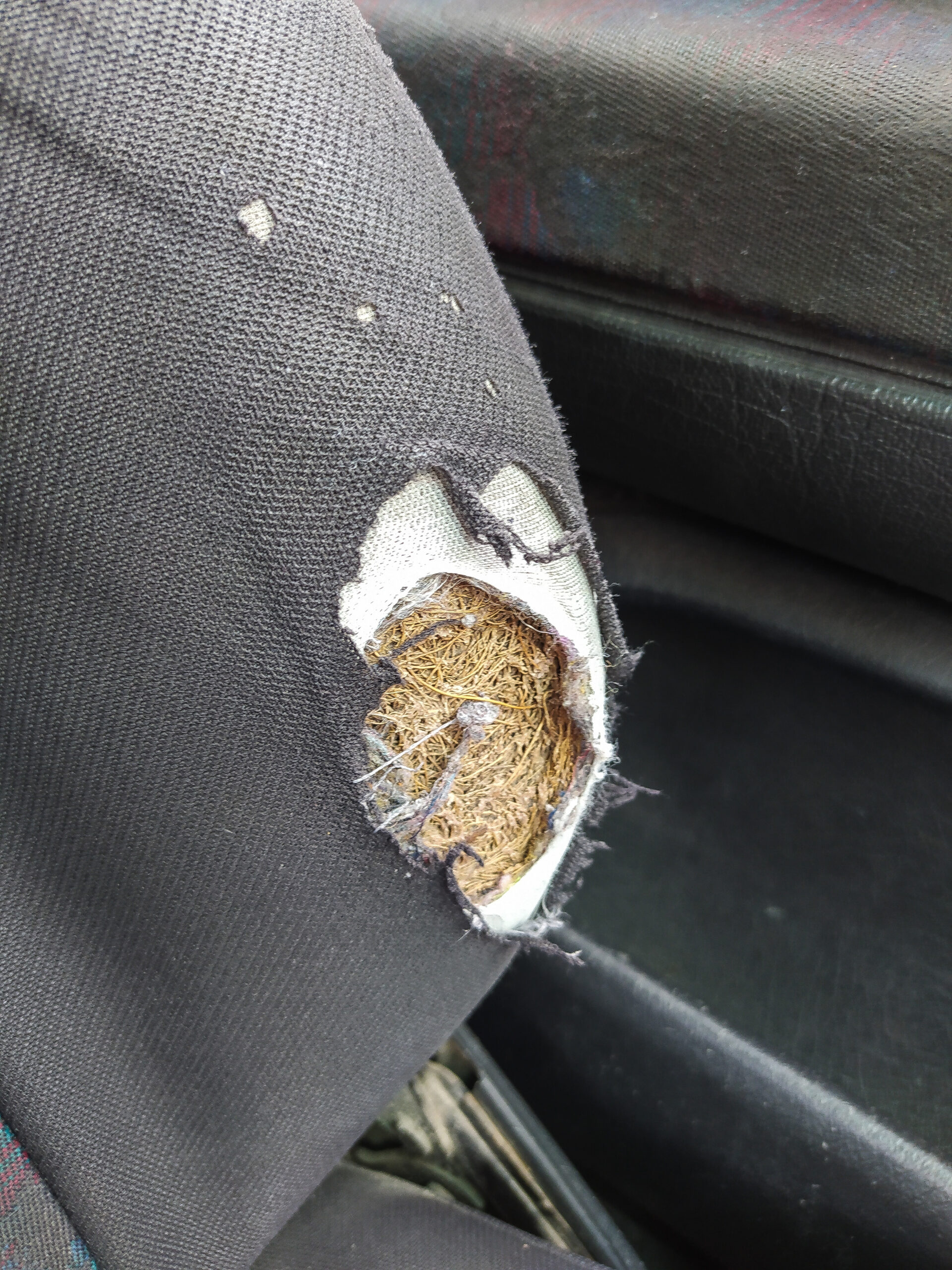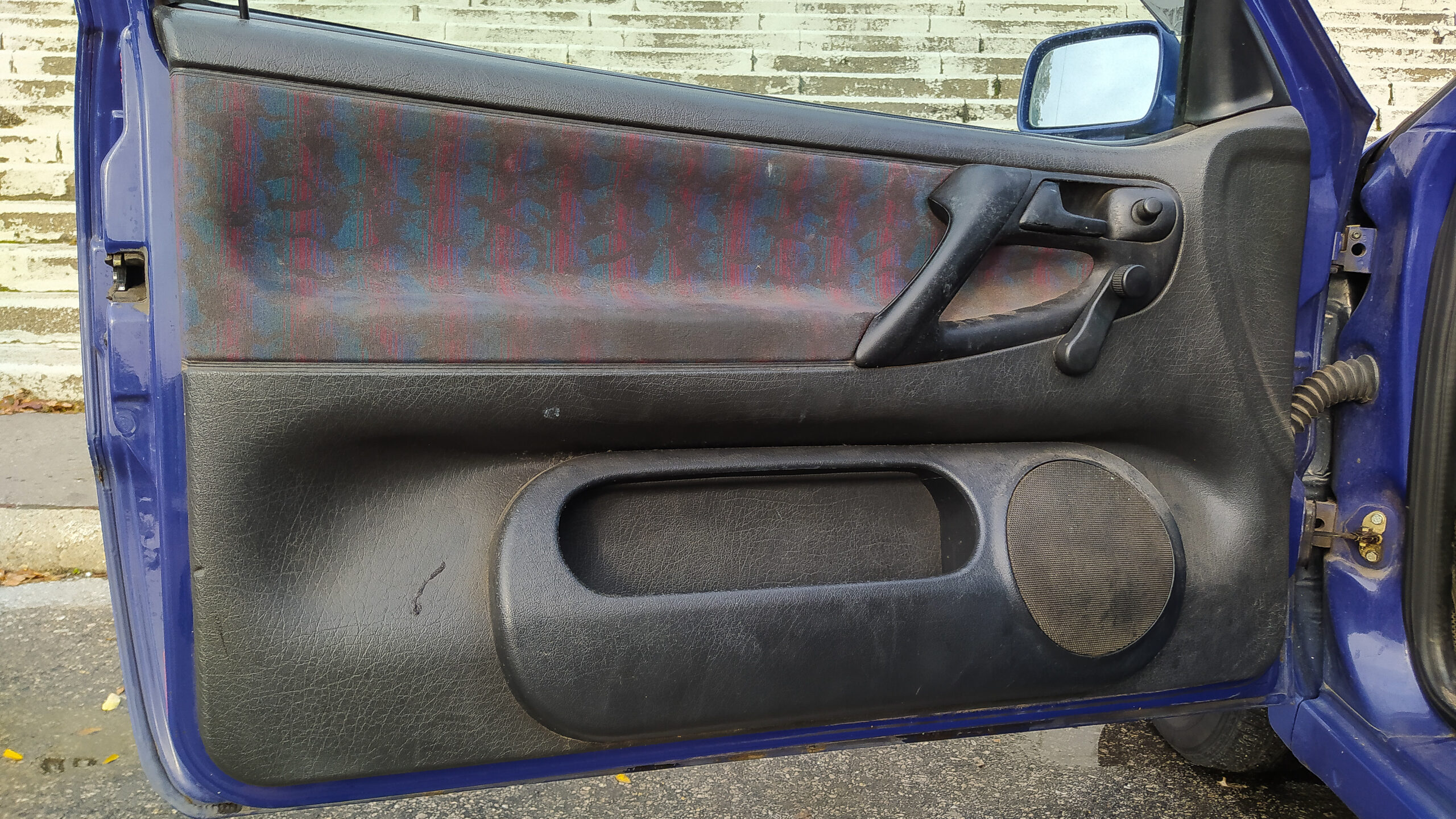 Az ülés "a szokásos helyen" szakadt, a műszerfal pedig egy igen szokatlan helyen, a vészvillogó kapcsolójánál törött - az ajtó belsején viszont minden működik, tekintve, hogy nincs is benne semmi, ami tönkremehetne