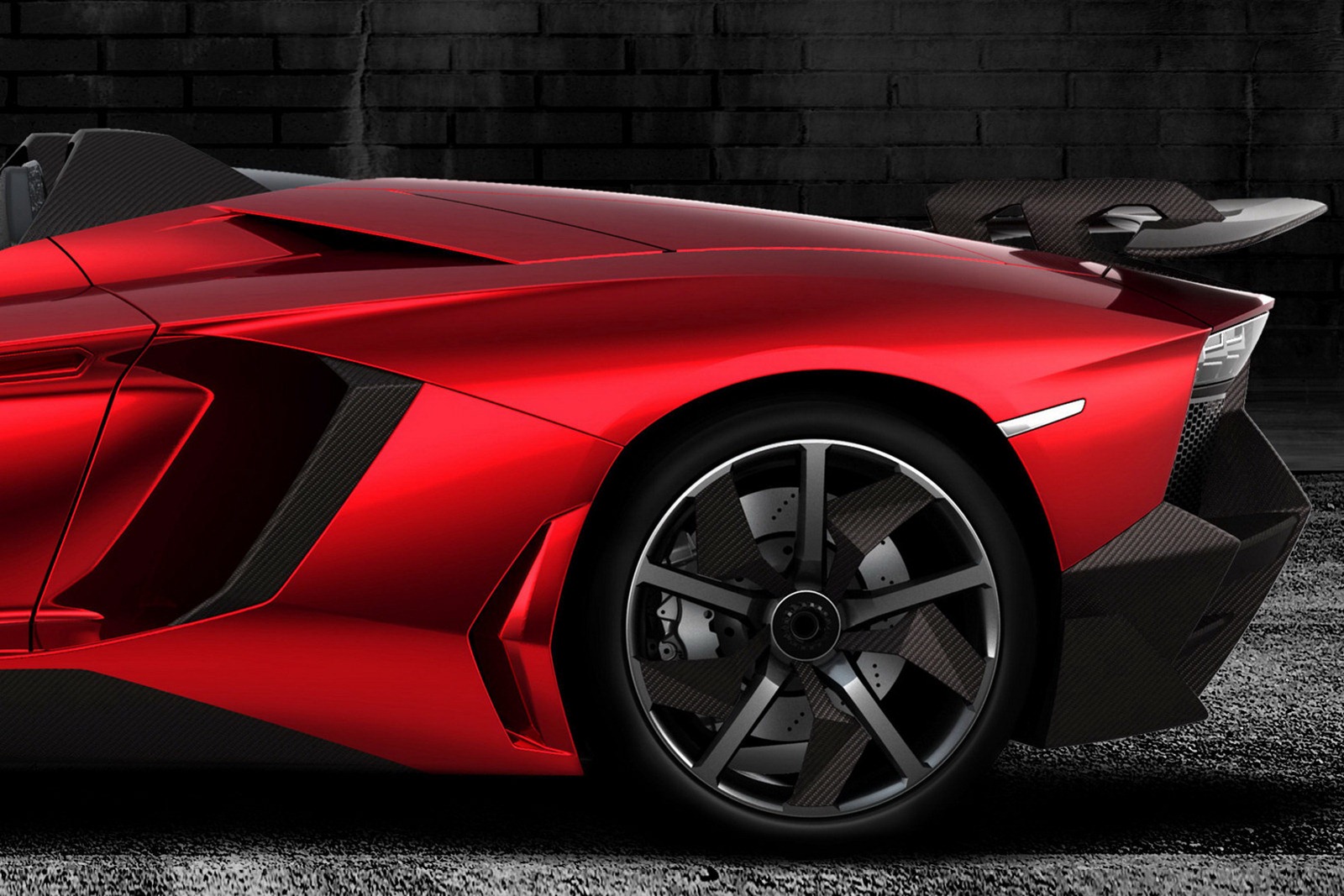 A Lamborghini először eltávolította a tetőt és a szélvédőt, két bukókeretet helyezett el az ülések mögött, és ennek megfelelően átszabták a karbonszálas kasztnit is. Karbonszálas műanyagból kívülre és belülre is jutott bőven, a kagylóülések is ebből készültek. A karosszériának nem maradt átépítetlen pontja, 4890 mm hosszú, 2030 mm széles és mindössze 1110 mm magas lett az Aventador J, elöl 20 hátul 21 colos egyedi felniken gördül.