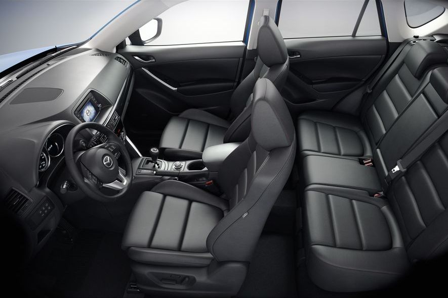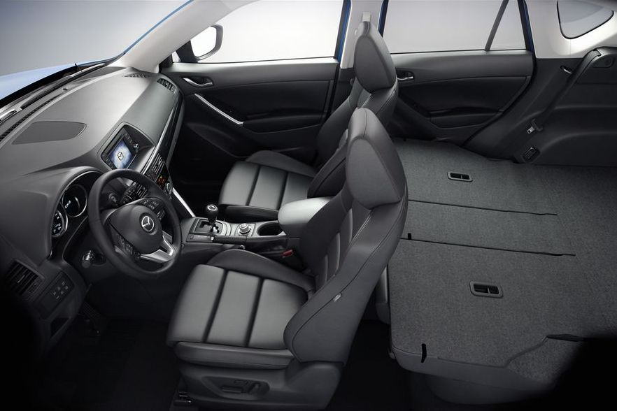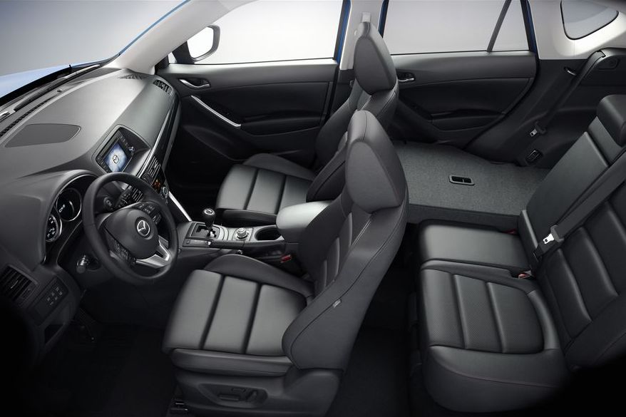 Csak a műszaki adatok között említ öt ülést a Mazda, a részletes ismertetőben azonban pontosan ugyanazt írja, mint ami a legtöbb autóról őszintén elmondható: "négy felnőtt maximális kényelemben utazhat akár hosszú távon is". Ők viszont tényleg kényelmesen, a helykínálat elegendőnek ígérkezik, s az ülőhelyek száma helyett inkább azt hangsúlyozzák a gyáriak, hogy az ülések közötti könyöklők elöl-hátul kellően szélesek ahhoz, hogy mindkét oldalról támaszkodhassanak rájuk az autóban ülők. A hátsó ülés közepe azonban nem csak könyöklőfelülete miatt érdekes: ez az autóipar, de jó eséllyel a földkerekség első, távirányítással síkba dönthető, 40:20:40 arányú háttámlájának azon része, amelyen keresztül 25 cm széles tárgyak is áttolhatók – síelni tetőbox nélkül is bátran lehet majd indulni a CX-5-tel.