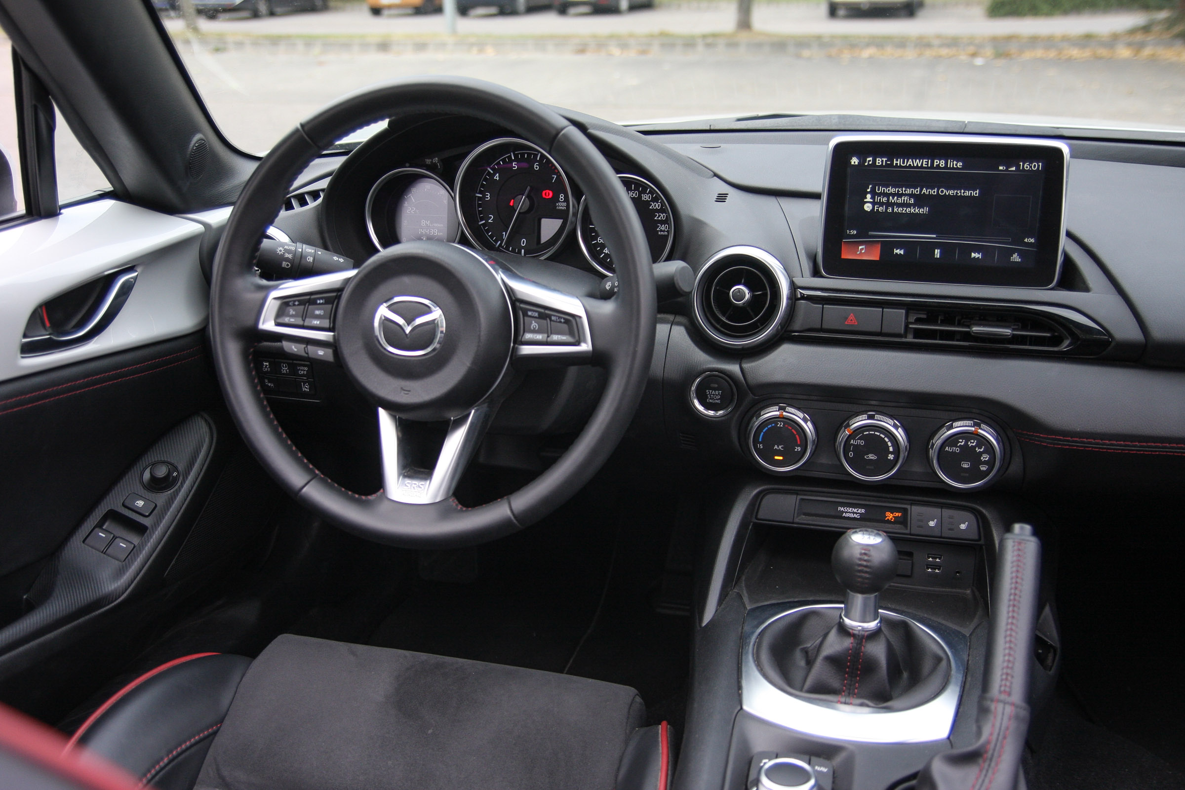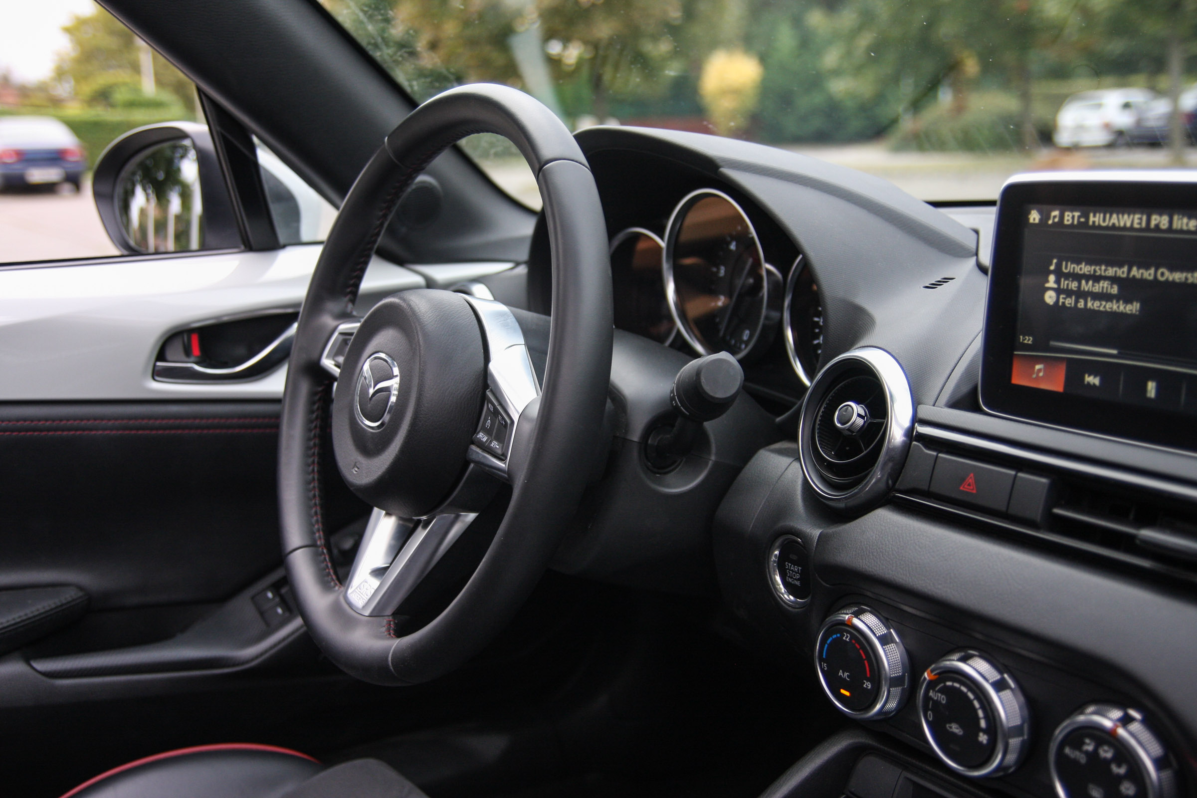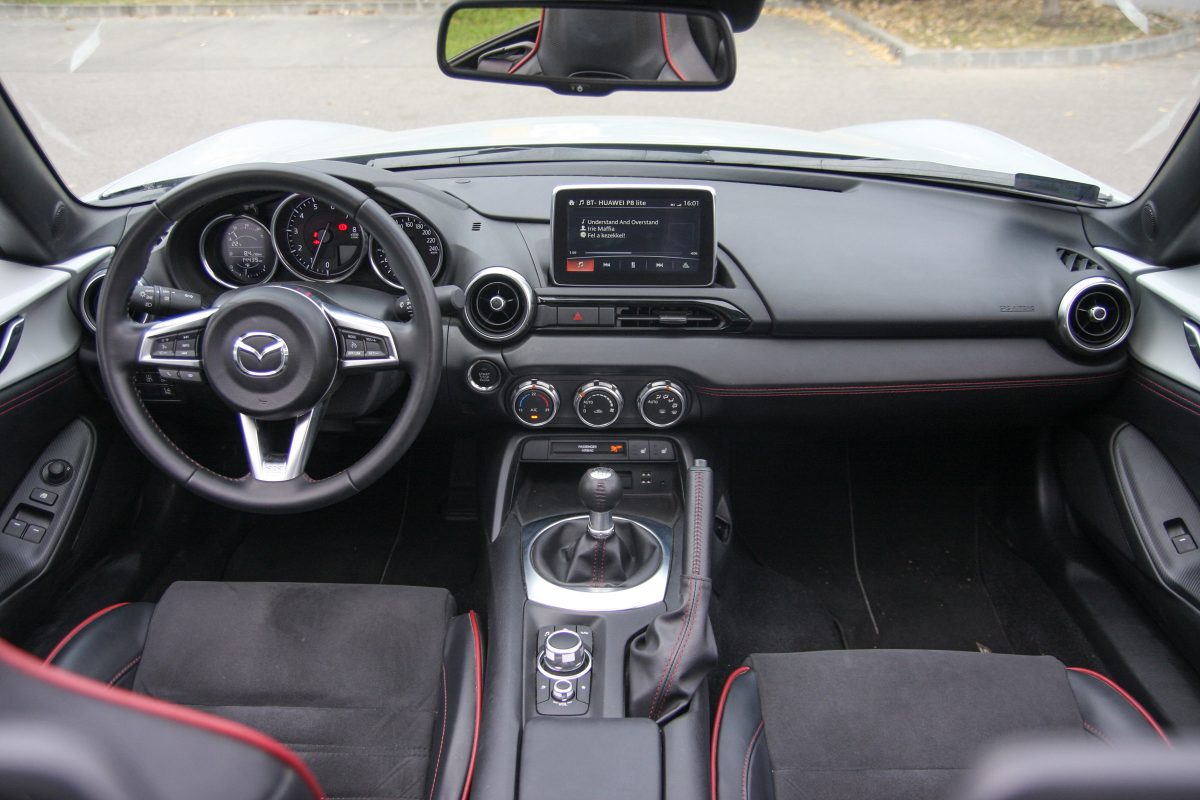 Nem helyes, ha azt mondom, ez itt a lényeg, mert az egész MX-5 maga az autózás lényege, mégis nagyon fontos az utastere. Szűk, átlagos termetemnek még épp volt elég hely, minden nagyon közel, kéz alatt van