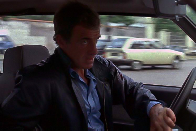 Az autós üldözésben egy akkor éppen új, harmadik szériás Fiat 131 SuperMirafiori és egy mára szintén klasszikus Peugeot 504-es szerepel. Beaumont kért egy autót a ház elé, de kapott mellé kíséretet is. Rosen felügyelő és Farges felügyelőhelyettes a nyomában vannak. Belmondo nagyon menő a bőrkabátjában. Félkézzel kormányoz, de ha kell, átfogással tekeri a Fiatnak. A dupla vezérműtengelyes sornégyes meg gázfröccsnél hörög, ahogy kell. Koccanások sorozata után az Eiffel-torony is feltűnik, és egy lépcsőn folytatódik a párizsi üldözés. A jelenet végén Belmondo felborítja a rendőrök 504-esét. Itt látszik egy kartervédő, ami a jelenetben használt preparált kocsi sajátja. Jean Paul Belmondónak több autós vonatkozású filmje is van, több jó üldözéses jelenettel, de mind közül ez passzol a legjobban a történetbe. Érdekes, hogy Alain Delon összes filmjét a korszakban a Lancia szponzorálta, emiatt a Laciák bizony felülreprezentáltak a filmjeiben. Autós szemmel kedves az összes, mindben van üldözésféle is, de a kevesebb gyakran több, így nálam Belmondo és a Fiatja a legnagyobb király.
