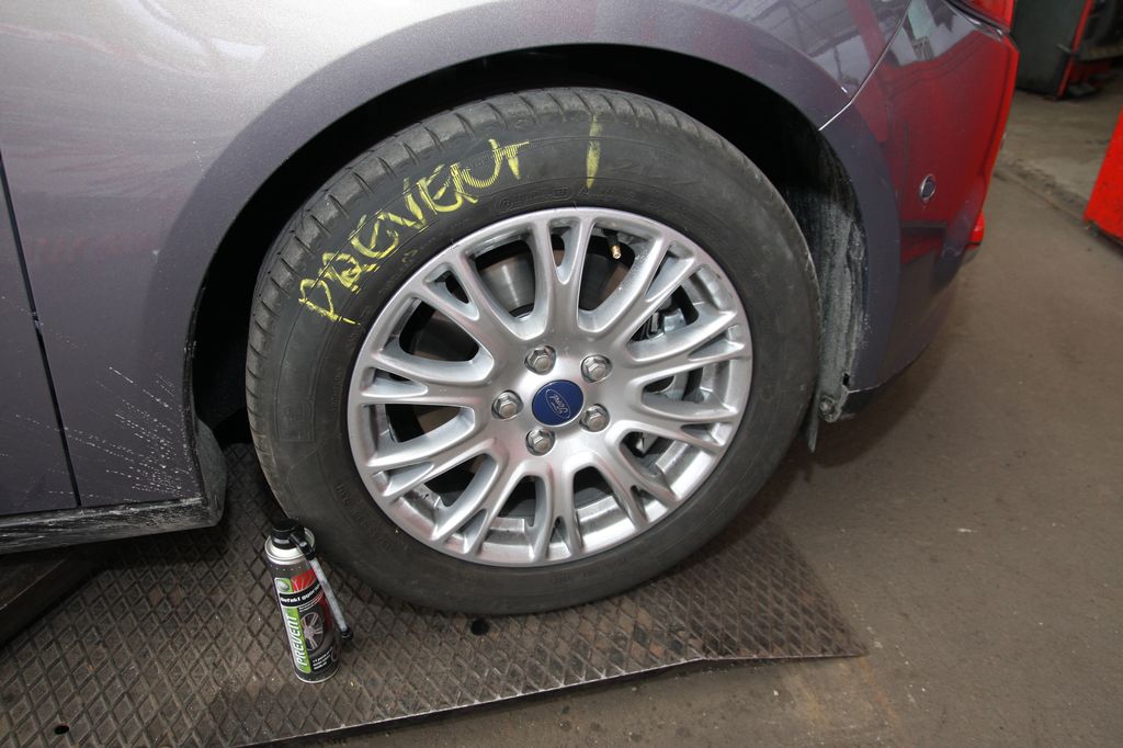 Csak egy apró szöget ütöttünk az abroncsokba, ám a löttyök macerás kimoshatósága miatt a teszthez használt gumikat szereltettünk az alufelnikre. Szándékosan nem acélokra, ugyanis a defektjavítókat elsősorban a gumikat az acéloknál erőteljesebben feszítő, peremüknél jobban záró könnyűfém kerekekhez ajánlják