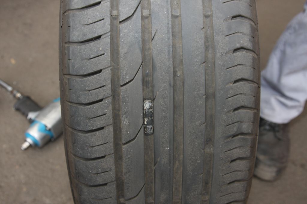Első lépésben minden esetben a lyukat okozó tárgyat, jelen esetben a szöget kell eltávolítani