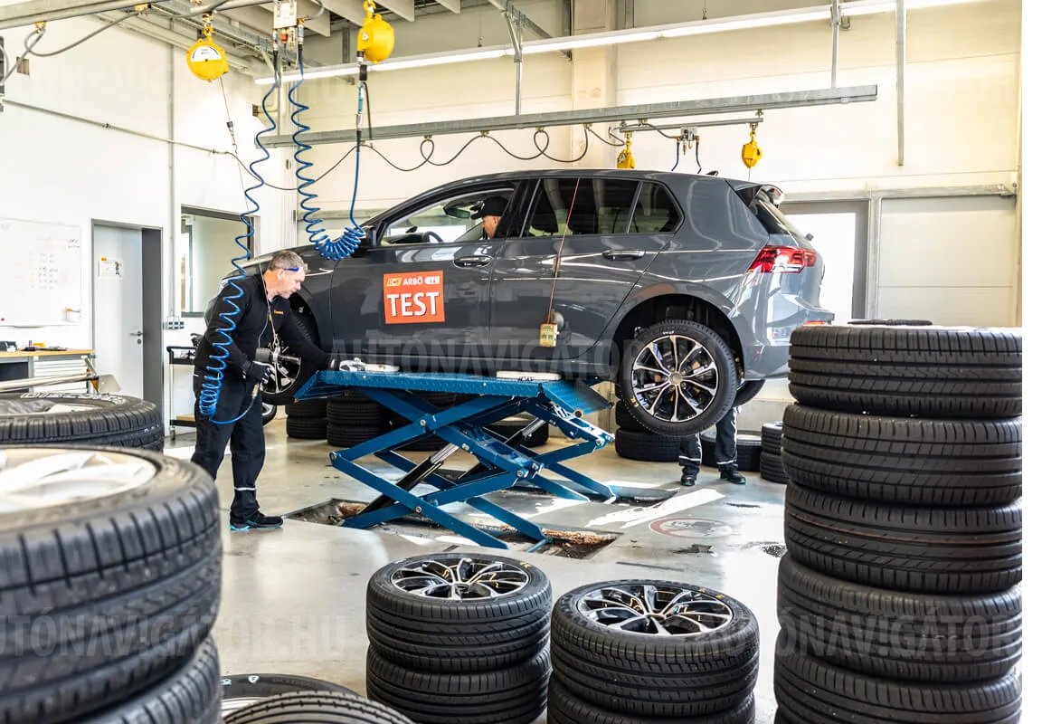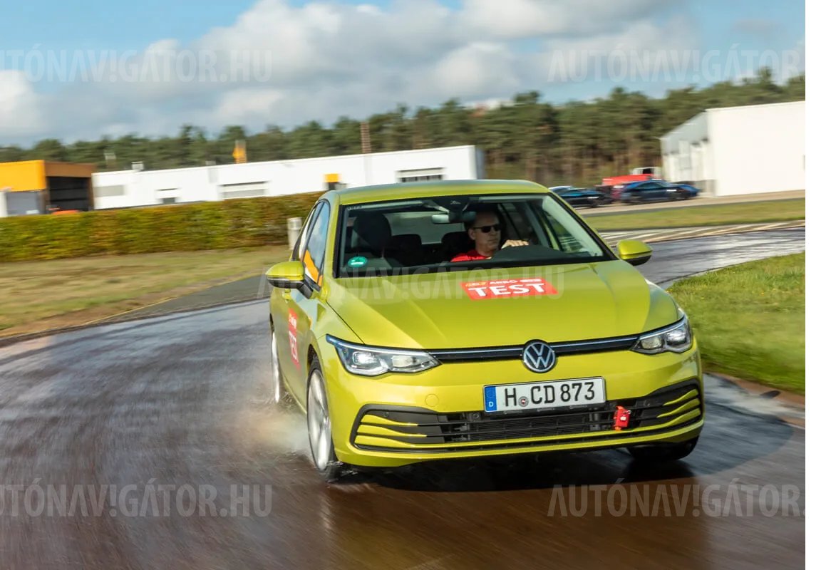 A németországi Contidromban végzett GTÜ/ACE/ARBÖ gumitesztjén Golf VIII tesztautókkal vallatták a 225/45 R17-es abroncsokat (Fotó: www.ace.de)