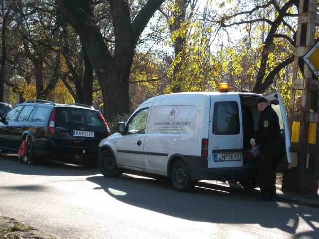 Ez már nem csak az autósokat zavarja, hazafele egy gyalogos kiabál, mit kiabál, valósággal üvölt az egyik kerékbilincselő közterületessel valahogy így: „Szerencsétlen, hova parkoljon? Évek óta ez megy itt, nem szégyelli magát fiatalember? Egyébként is, ha a felüljáró felől érkezett, márpedig a legtöbben onnét kanyarodnak erre az útra, nem is látszik a tábla…!” A fiatalember azonban mit sem törődik ezzel, ugyanolyan tilosban járva, teszi a „dolgát”.