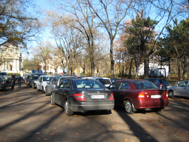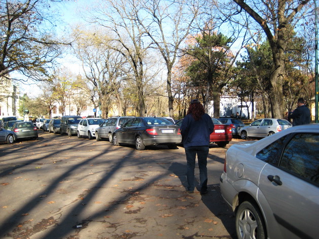 Hely nem hogy elég, kifejezetten kevés, reggel 9-kor is már csak elvétve találni, s míg "boldogabb" országokban ilyenkor szervezetten hajtják fel az autókat a járdára, fűre akár, s igyekeznek a lehető legjobban és legrugalmasabban megoldani a parkolási gondokat, elhelyezni az érkezőket, addig nálunk valamiért épp az ellenkezője folyik.