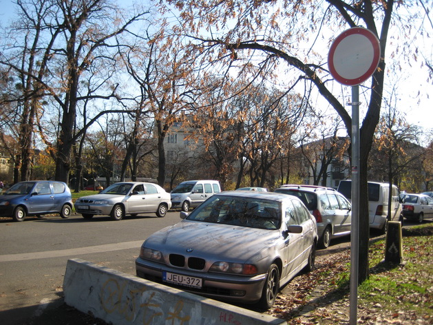 A behajtani tilos mögött garantált a kerékbilincs, nem mintha bárkit zavarnának a szabályosság határától pár tíz méterre parkoló autók