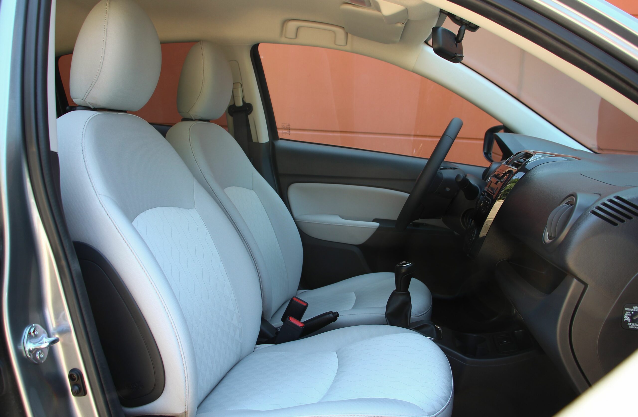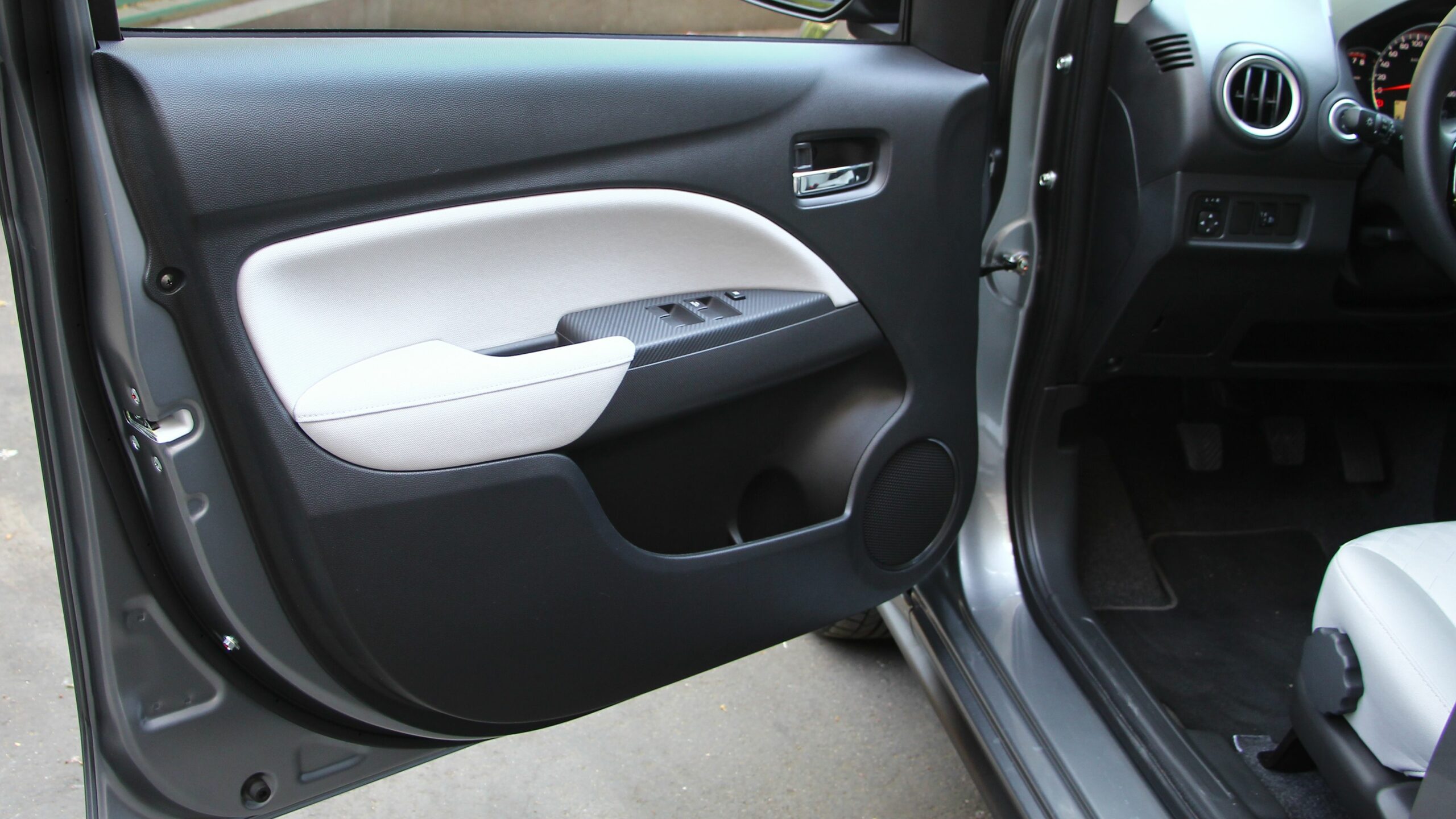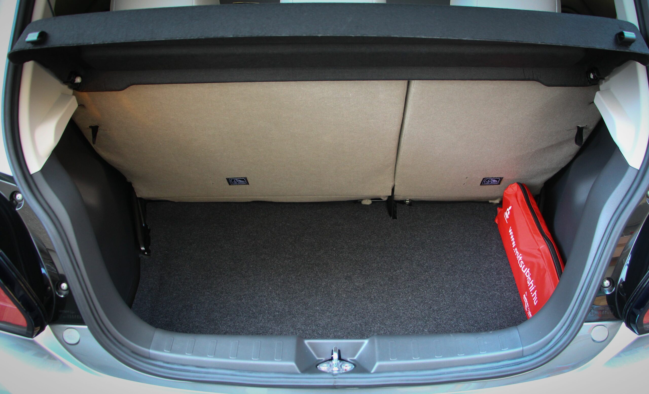 Emil Frey Mitsubishi Centrumától kapott tesztautóban fehér szövetkárpit borította az üléseket. Biztosan jobban kell figyelni rá, hogy tiszta maradjon, ne színeződjön el hosszabb távon, viszont óriásit dob a belső hangulaton.