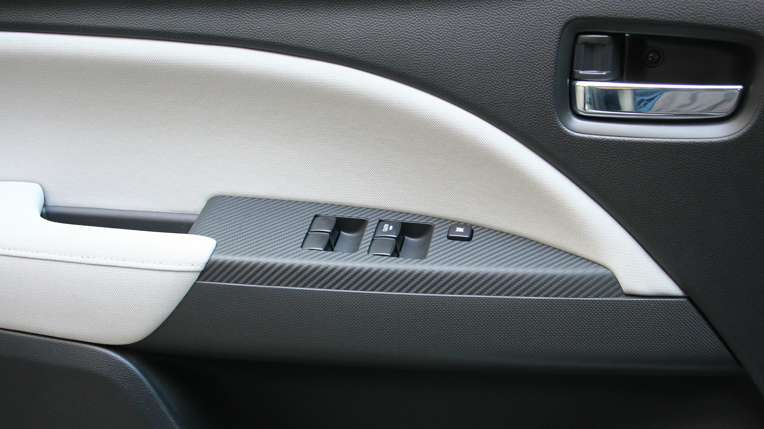 Bent az anyagminőségen javítottak, és ez nem csak a szokásos marketing lózung, tényleg kellemesebb tapintásúak még az egyébként olcsó hatású műanyagok is. Ebben a kategóriában nem szabad csodát várni ezen a téren, de a Mitsubishi bármelyik konkurenssel bátran összehasonlítható, avagy összetapizható, mert jó munkát végeztek a frissítés során. Habár csak apróság, de a sportos vonalat tovább erősíti az ablakemelő gombok környékén a szénszálmintás betét, ráadásul az Elegance szinten már mind a négy ablak elektromosan működtethető. Külön öröm, hogy az