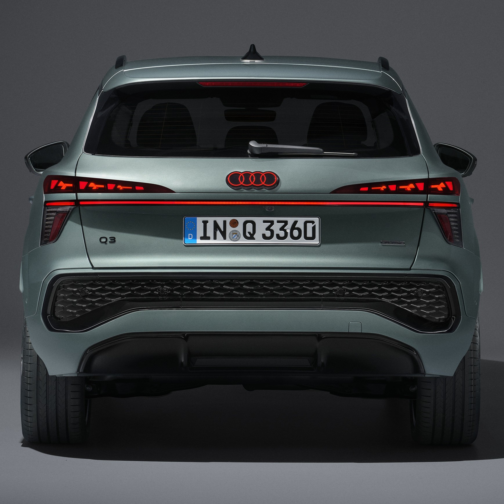 Lehullott a lepel a új Audi Q3-ról Ingolstadtban. A prémiumkategóriás kompakt crossover felvette az Audi új formanyelvét, amiről az osztott fényszórós, lekerekített, de kimondottan magasra húzott orr-rész is árulkodik. A fényforrások felárért a nagyobb méretosztályokból ismert Mátrix-LED technológiás lámpák is lehetnek, az Audi történetében először DMD helyett micro-LED modullal. Kissé mintha a Q6 e-tron orrát, sziluettjét és c-oszlopát kombinálnánk az új, benzines A6 hátuljával, mindezt a Q3 méretére zsugorítva. Az összhang tökéletes, egyértelmű, hogy egy Audi modellről van szó, miközben a modern igényeknek is megfelelnek a részletek. Sokkal fontosabb azonban, amit a méretek terén sugall a formavilág.
