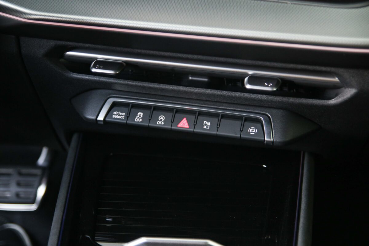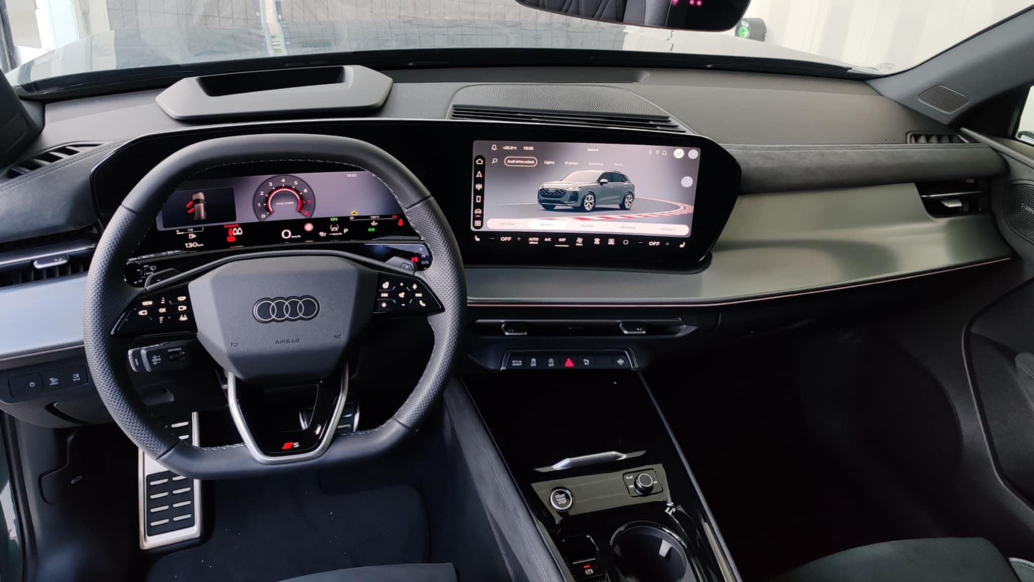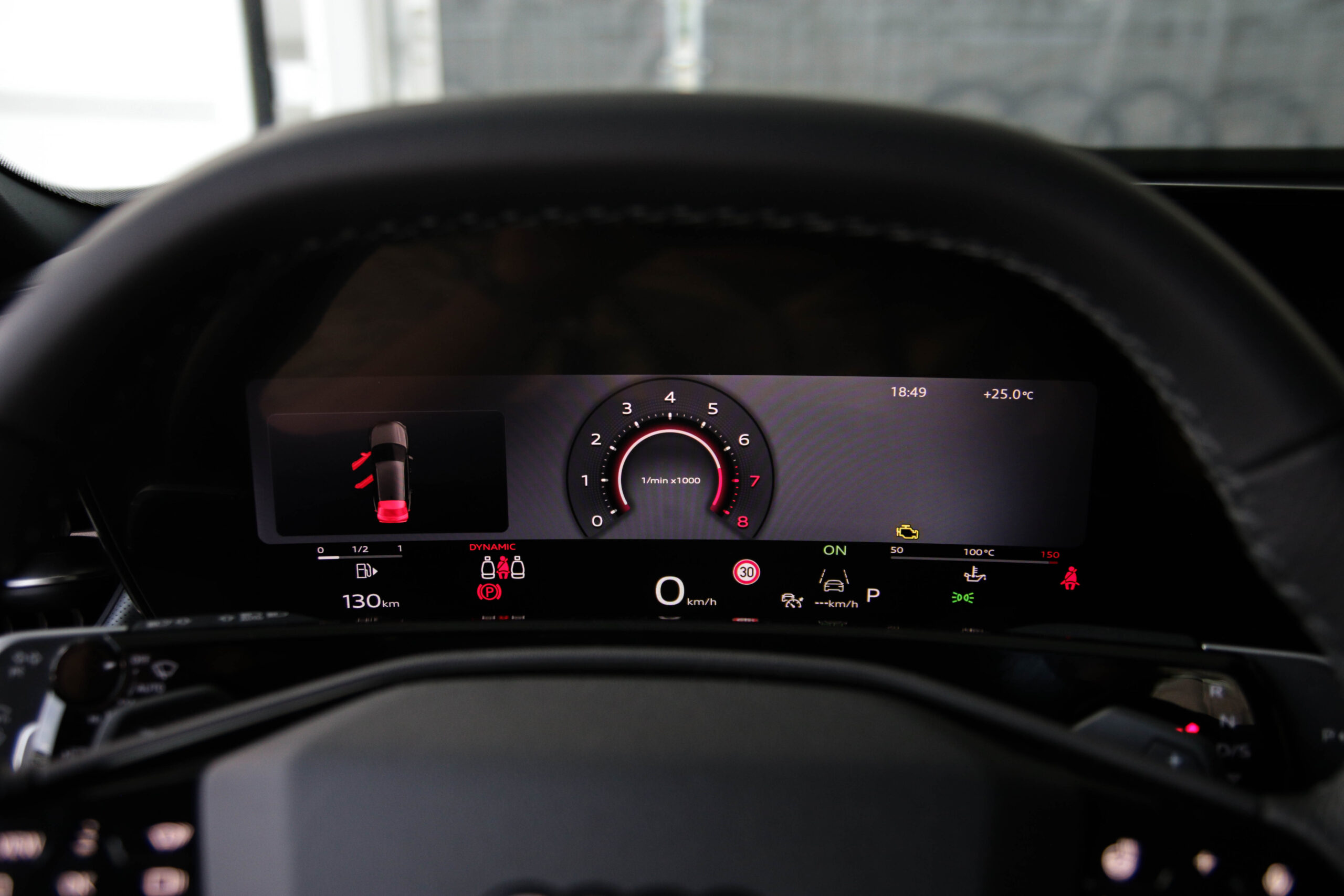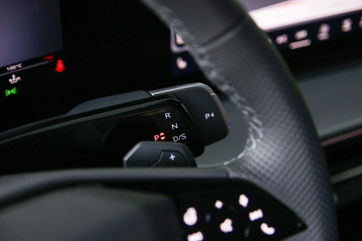 Az utastér is meglepően tágasnak hat, főleg az első sorban. A műszerfalon is játszottak a formákkal a tervezők, hogy minél elnyújtottabbnak tűnjön, ezáltal minél szélesebbnek hasson az autó belülről. A digitális műszeregység és az infotainment képernyő a legújabb Audi modellekkel azonos elrendezést kapott, ám a harmadik képernyő - vagy alacsonyabb felszereltségnél annak helye - most kimaradt az egyenletből. Még így is egyértelmű űrt hagyott maga mögött, ami szintén hozzájárul a tágasabb utastér illúziójához, ahogy a középkonzolról elköltöztetett funkciók sokasága is. A legnagyobb újdonság azonban, hogy eltűnt az indexkar, a helyére pedig egy fix kapcsolócsoport került, amely az irányjelzés és a reflektor mellett az ablaktörlőt is vezérli.