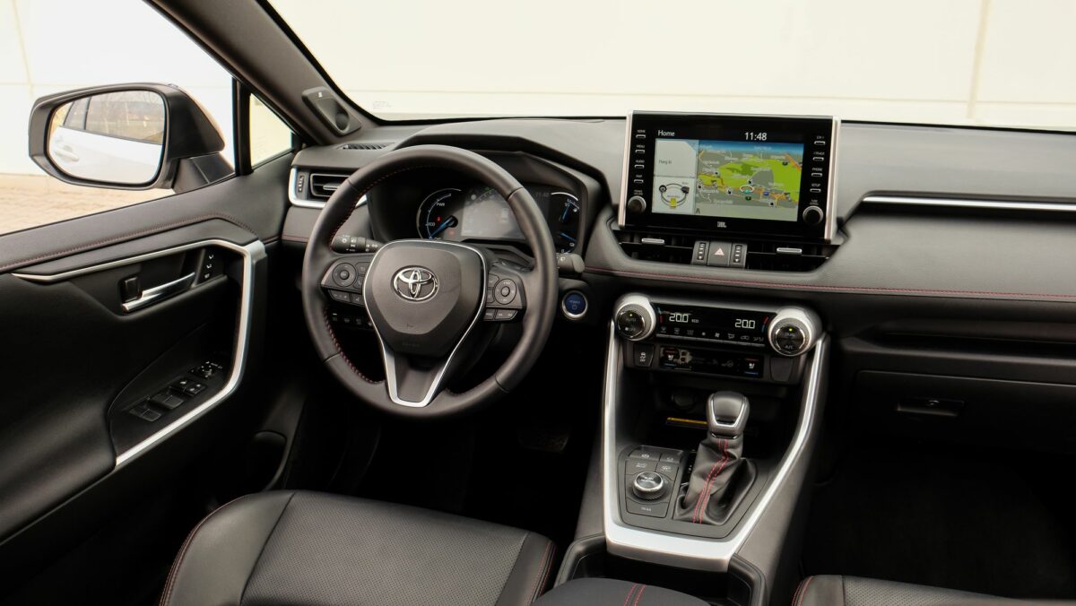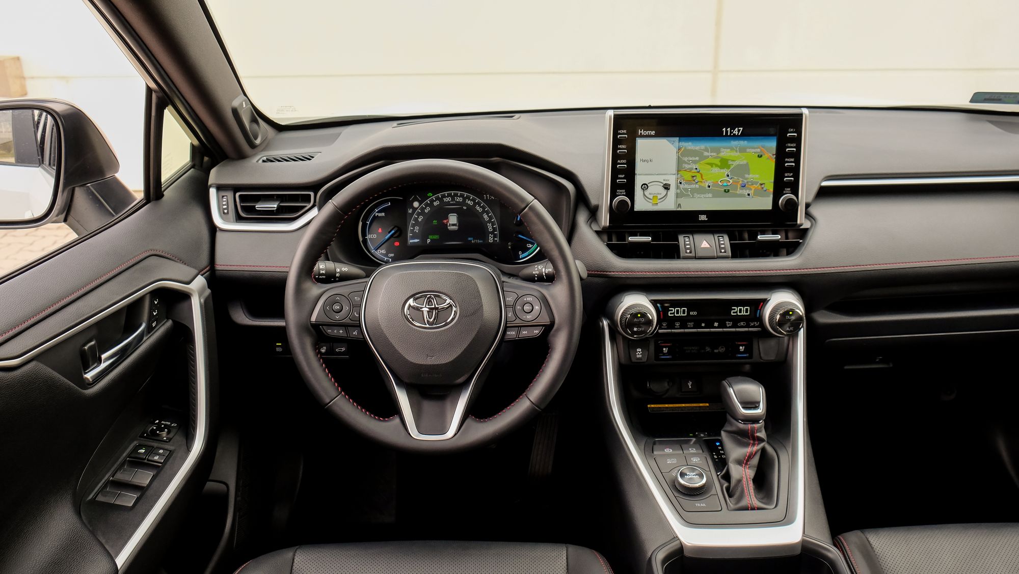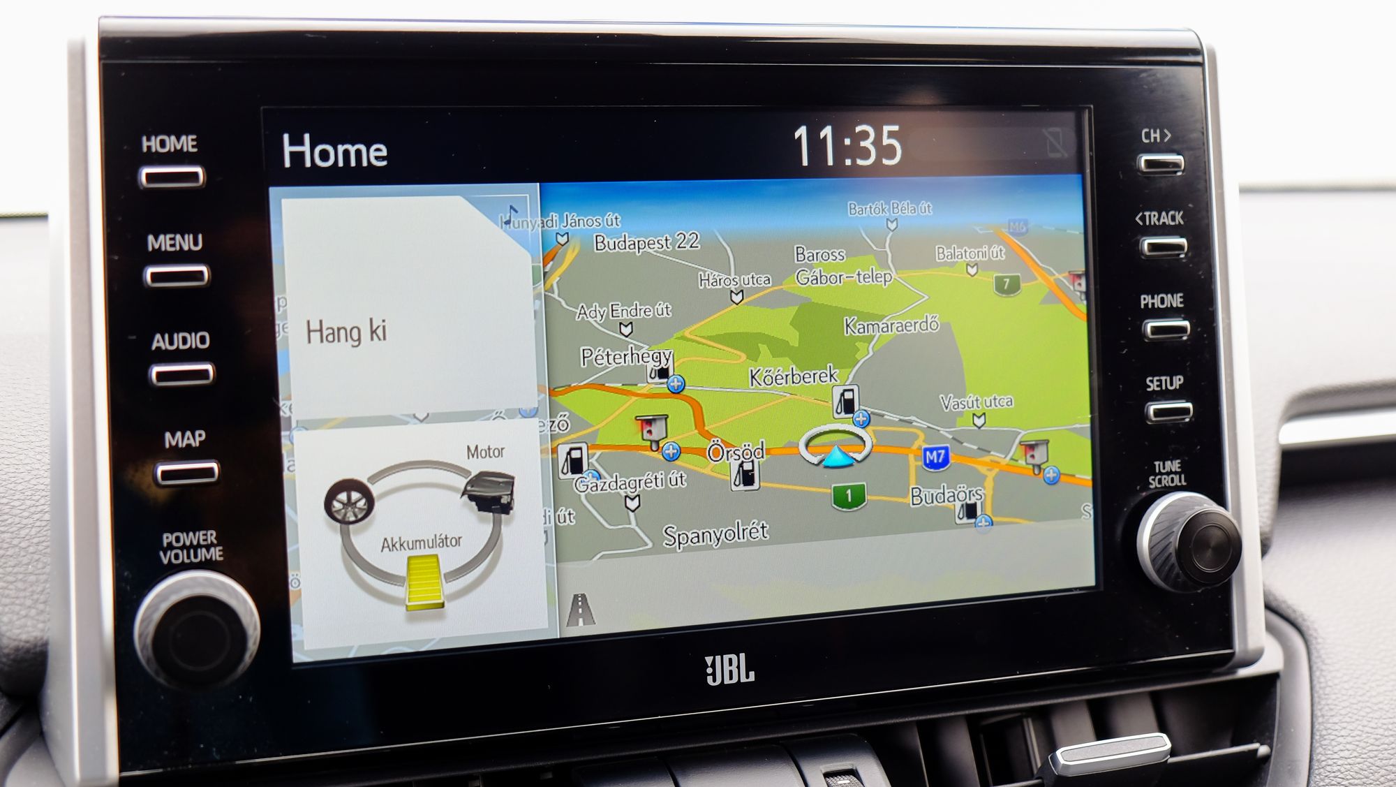 A teszthéten én mindössze 3 alkalommal tudtam teljesen feltölteni az akkumulátort, plusz kapott még 2 rövidebb konnektoros töltést (2-3 óra alatt azért már több 10 kilométernyit tölt magába), ellenben több mint 800 kilométert tekertem bele a március 15-ei hosszú hétvégén. Így is 4,5 literes benzines átlagfogyasztás adódott csupán, miközben a RAV4 minden, csak nem kompromisszumos. Elektronikus klímája hőszivattyús, így aztán az nem vesz el sokat a hatótávból, nyugodtan lehet használni elektromos módban is. Ha fáznánk, van ülés- és kormánykerékfűtés is, sőt az első üléseknél szellőztetés is (a Selection VIP csúcsverziónál). A helykínálat pazar, az ülések kényelme és az utastér anyagminősége is korrekt, amiatt nem bántanám, hogy az alsóbb, jellemzően nem tapizott műanyagok kemények. Lehet fanyalogni azon, hogy az infotainment nem a legnaprakészebb, de van azért már Apple CarPlay és okostelefonos távlekérdezés, sőt klímaindítási lehetőség is.