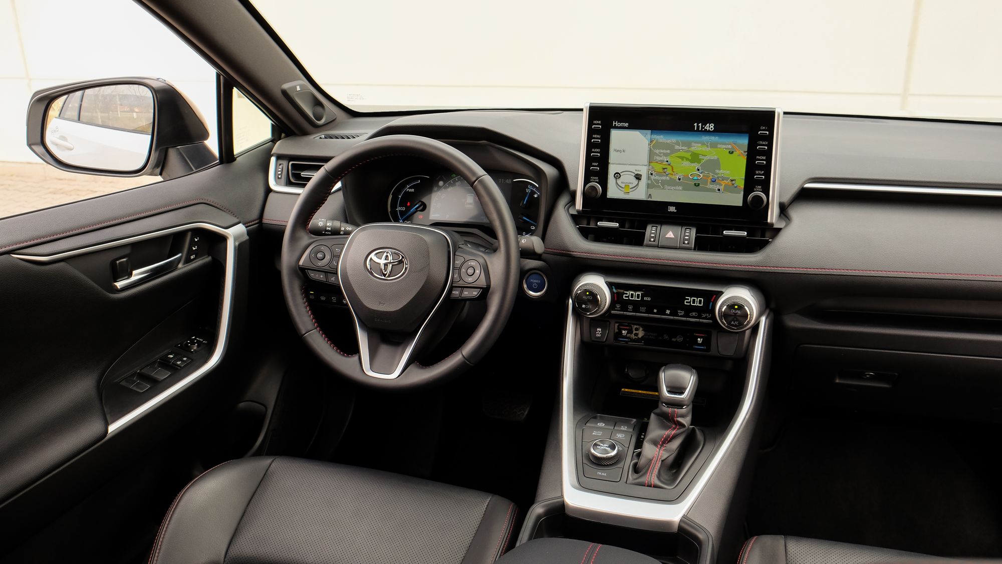 A RAV4 Plug-in Hybrid a nyugalom szigete, a teszthéten teljes töltésnél rendre kiírt és teljesített 82 kilométeres emissziómentes hatótáv elég jó, a napi ingázáshoz még akkor is megfelelő, ha ki kell mennünk a saját városunkból, akár autópályára. 135 km/órás tempóig tud menni tisztán elektromos módban, s amíg az akkukapacitás engedi, elektromosan is megy. Alapból EV-módban indul, de van töltésmegtartós HV (Hybrid Vehicle) és Auto EV/HV, valamint Charging, azaz töltés mód is. Még utóbbiban sem ugrik meg extrém módon a benzinfogyasztás, de természetesen jobb bolt, ha nem a benzinmotorról, hanem külső forrásból töltjük az akkumulátort, ami természetesen sosem merül le teljesen. Nagyjából töltöttségének negyedét mindig őrzi, hogy ha kell, ki tudjuk használni a teljesítményt. Üres akkuval is megmarad a RAV4 ereje, továbbá hibridrendszere is elég ügyes akkor is, a városi autózás zömében akkor is benzinégetés nélkül haladhatunk.