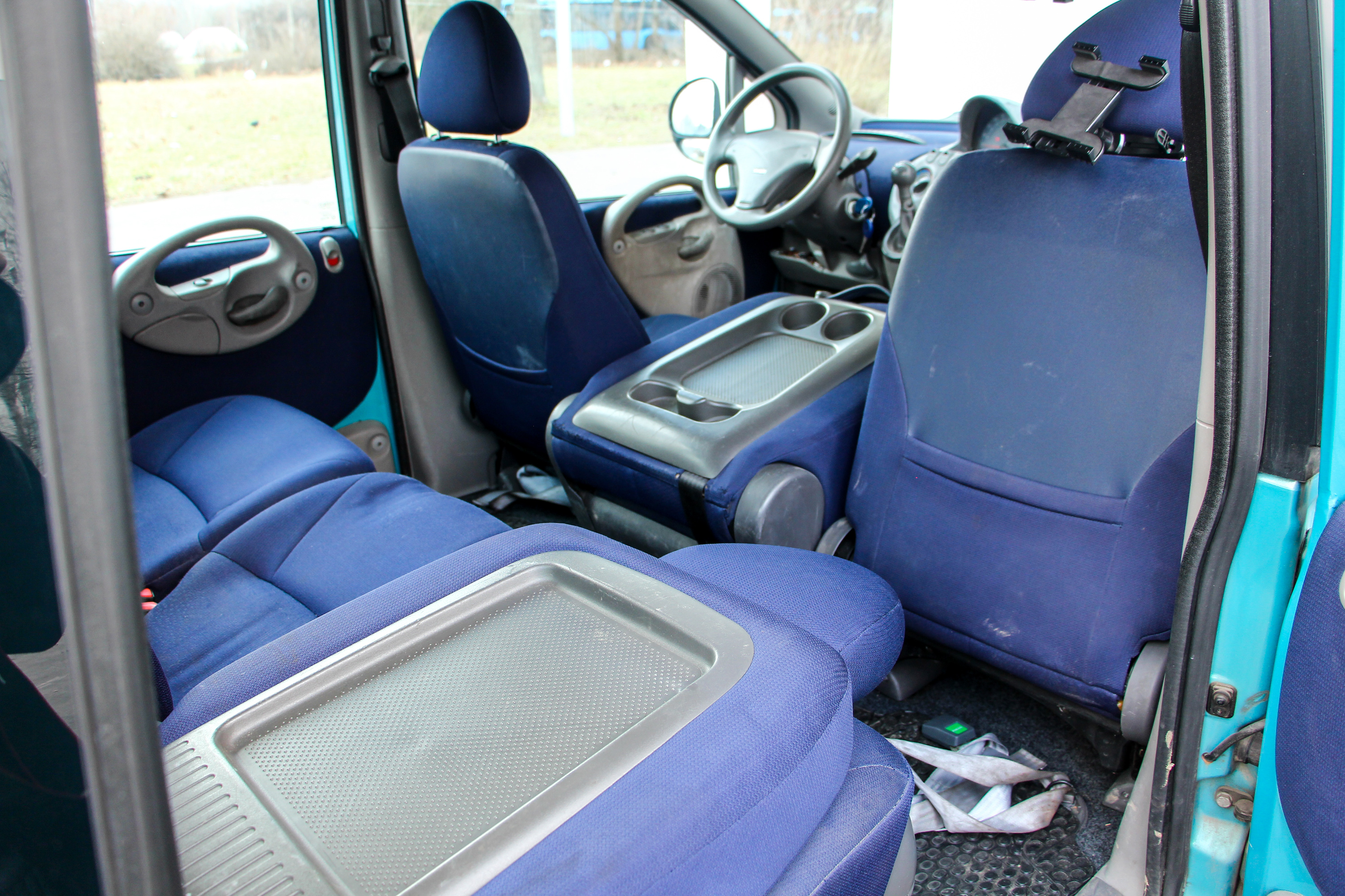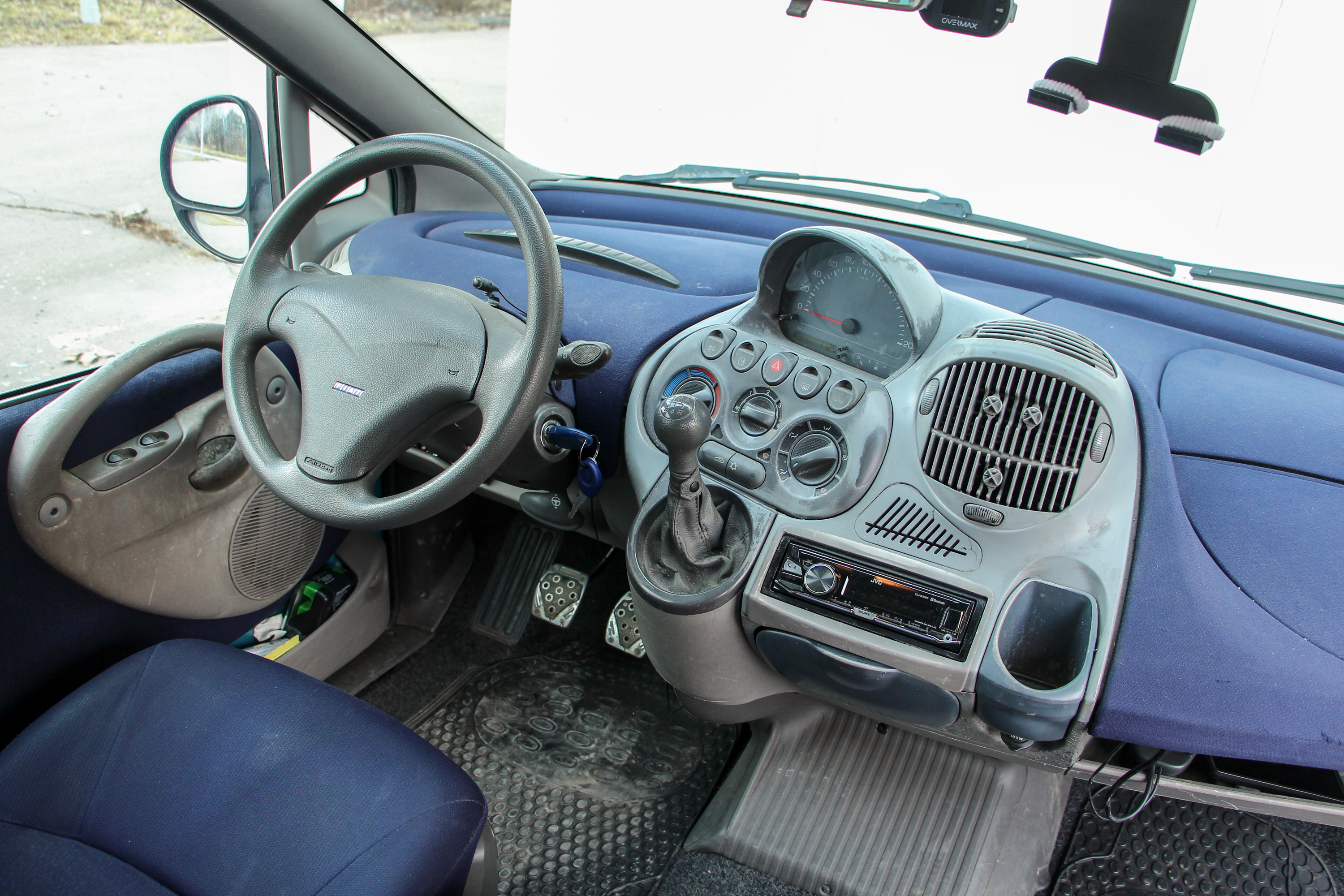 Már kint is találkozhatunk az öregedés borzalmas nyomaival, a kilincsek furcsa kinövései újkorában biztos valami elképesztően puha és klassz szilikonból voltak, mára viszont szilánkokban töredezik mindegyik, és ilyennel találkozunk bent is. Az utastér az, ami itt igazán fontos, hisz a Multipla olyat hozott a kategóriában, amivel leginkább csak kilenc fős mikrobuszokban találkozunk. A hat ülés mindegyike egyenként kivehető, fordítva berakható (ami gyerekülések rakosgatásakor jöhet jöl, lehajtható, mindegyik hátsó hátán van tálca, így mindegy, milyen sorrendben rakjuk őket vissza. Ha kivesszük, teljesen sík padlót kapunk, teherautó nagyságú raktérrel. A padlón mindenütt találunk rögzítőszemeket, ilyesmi egy személyautóban nincs, azóta sem, vagy annyira kevésben, hogy én még nem láttam. További mikrobuszos megoldás a sofőrülés bal oldalára helyezett kézifék-kar és a magasan a műszerfalra épített váltókar.