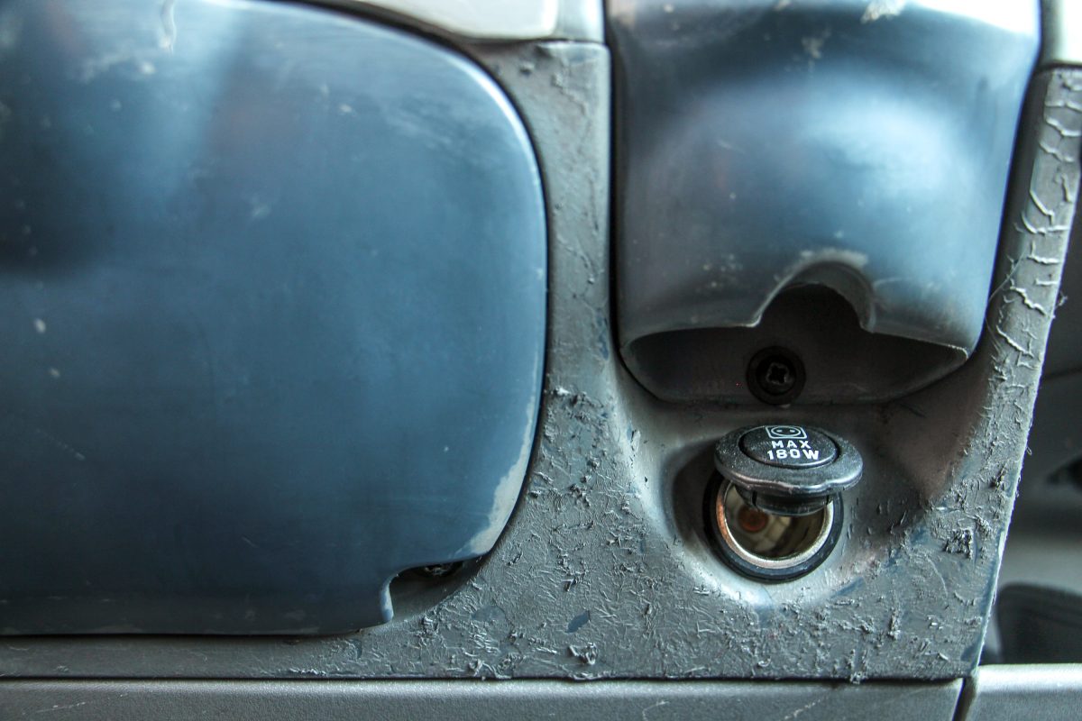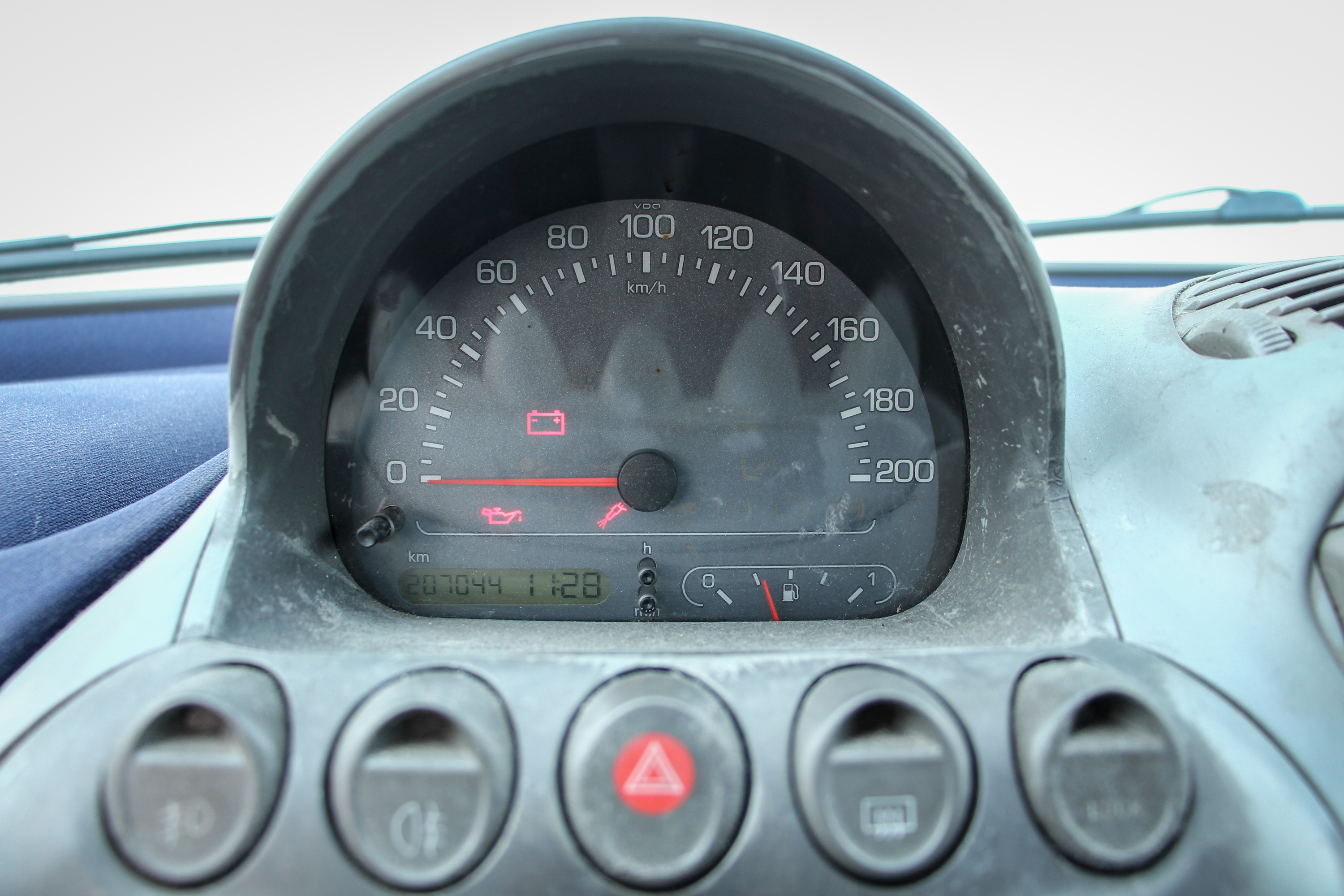 Elöl a középső ülés miatt nincs könyöklő, így az egyébként még ennél az idős autónál is viszonylag pontosan kapcsolható váltókart fura pozícióban lehet elérni, mintha dinnyét tartanánk a hónunk alatt. Aztán ott az óracsoport középen, plusz a kezelőszervek, a gombok, annyira idegenek. Na, de a legjobb az elektromos tükrök állítója. Nem tudom eldönteni, hogy zseniális, különleges, vagy használhatatlan, hogy a plafonra került a panelje, ezt még sokáig nem fogom tudni megérteni.Borzalmas állapotokat idézett elő 19 év, pedig hazai autó. Az oszlopok borításai és a belső műanyagok is nagyon elöregedtek, és nem tudom, mi kell egy műanyagnak, hogy úgy nézzen ki, mint a kilincs