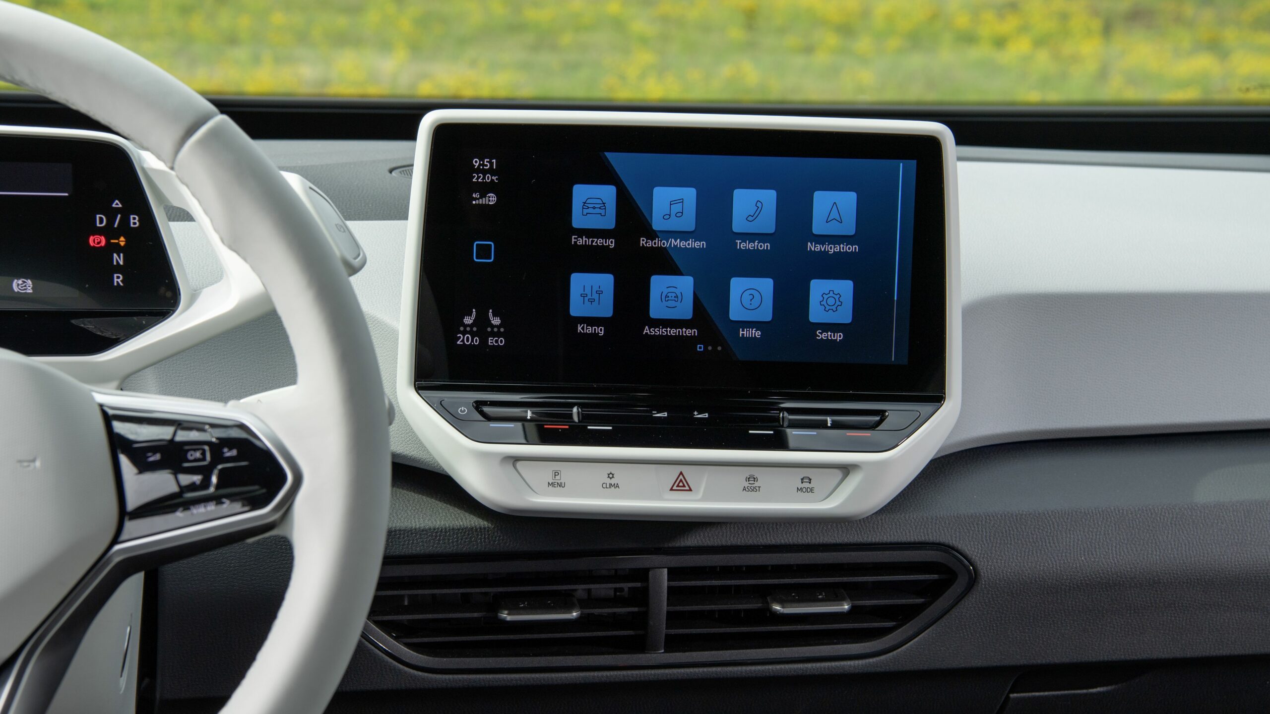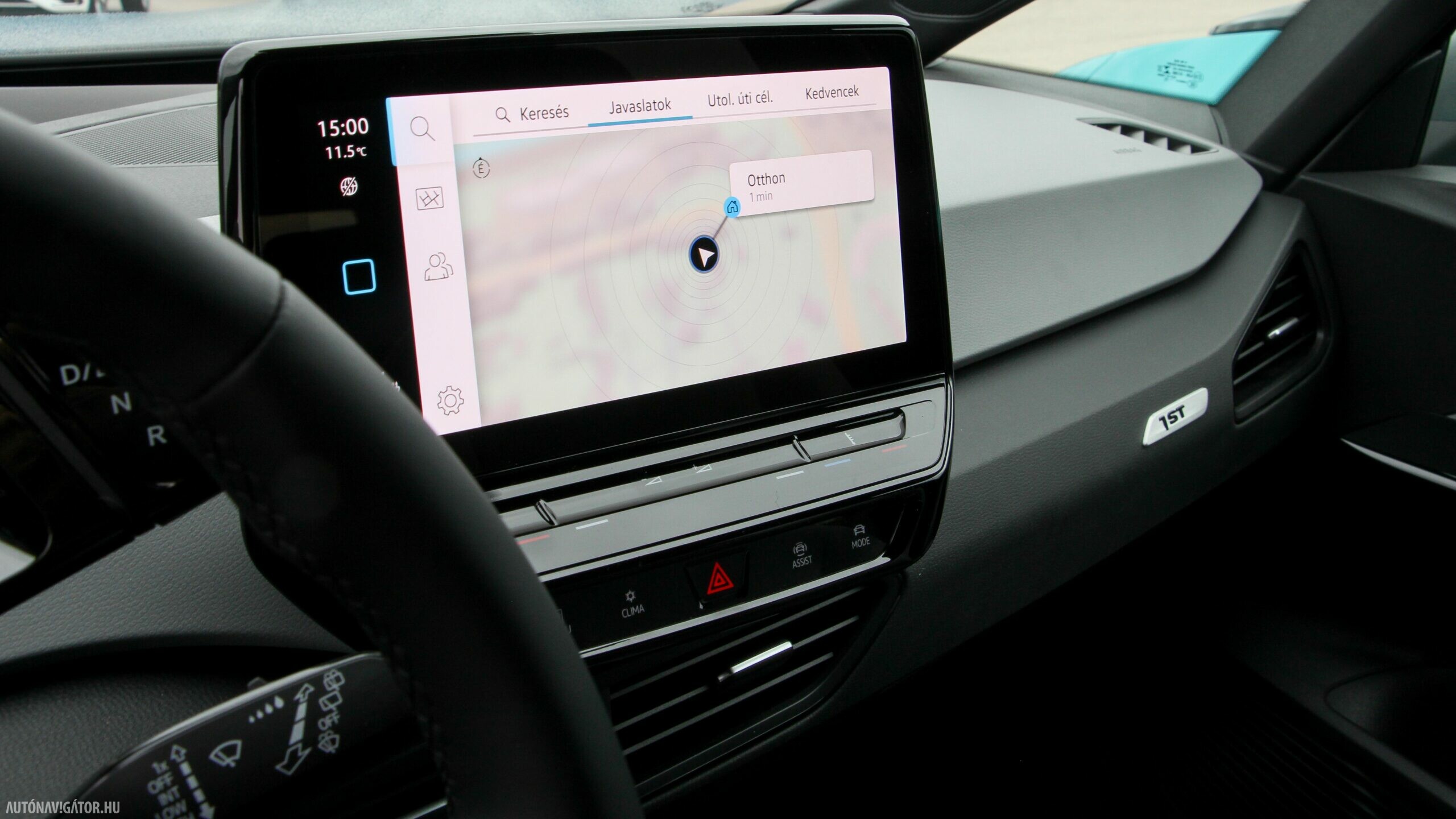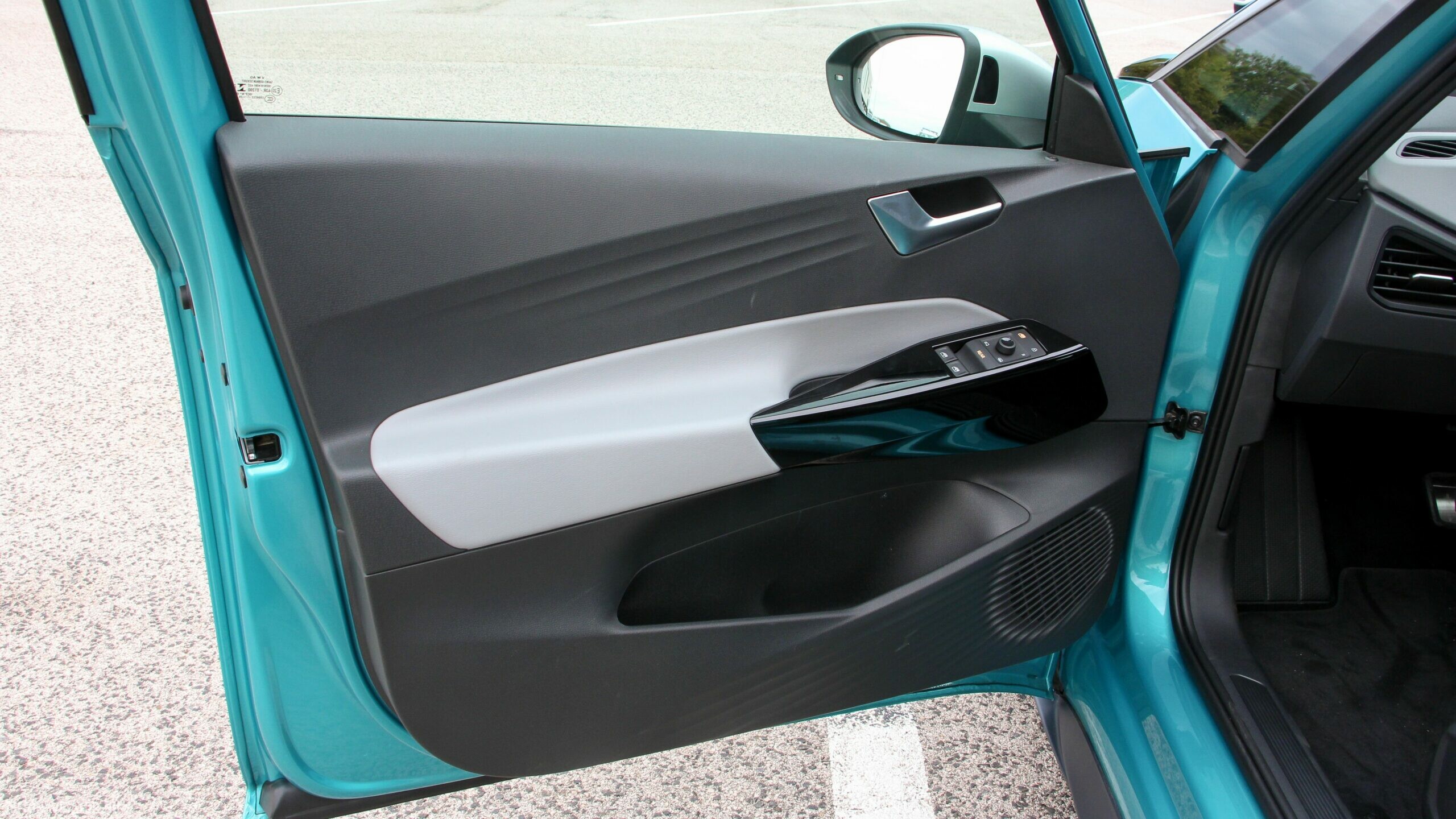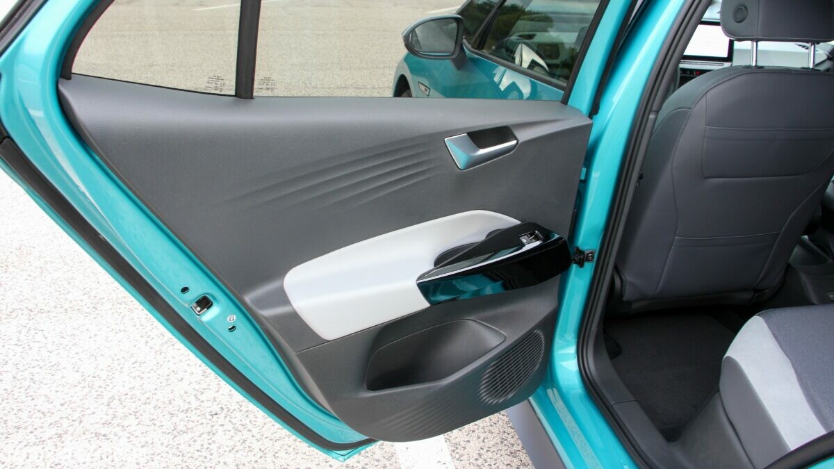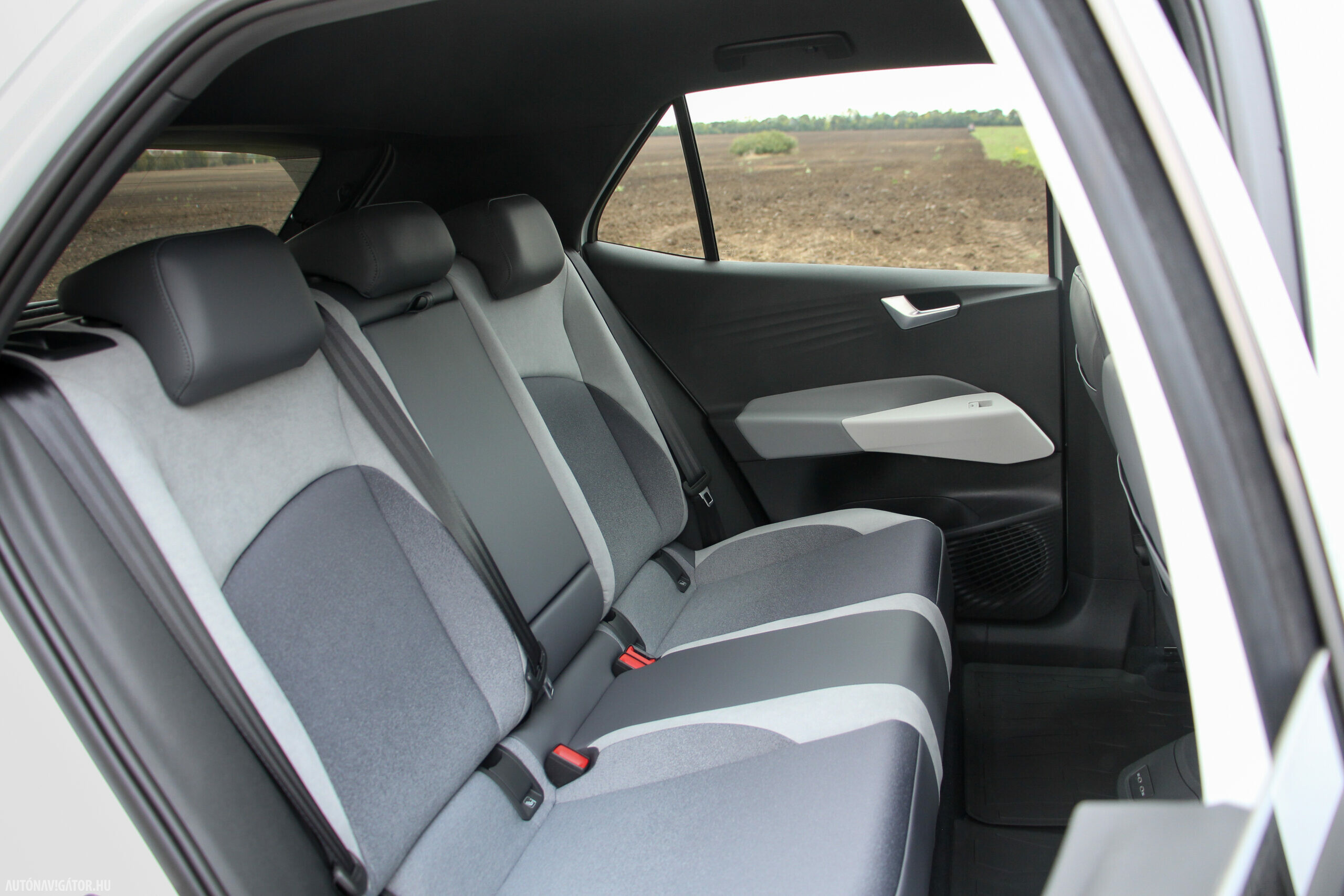 Az Open Space fantázianevű utastér légies, mint egy egyterűben. Az ID.3 voltaképp az, ha tapintásra egyszerű, de jópofán sok árnyalattal játszó kárpitokkal és persze jópofa részletekkel, ugyanakkor a már említett érezhető spórolásokkal. A sofőr ajtajára például a hátsó ablakok elektromos mozgatásához nem kerültek külön gombok, egyszerűen a "Rear" érintőfelület megnyomása után vezérelhetjük őket az elsőkhöz is használatos billentyűkkel. Természetesen teljesen digitális a műszerblokk, alapáron jár a központi érintőkijelző is, amin a navigáció mondjuk nem ismerte a drivingcampet.